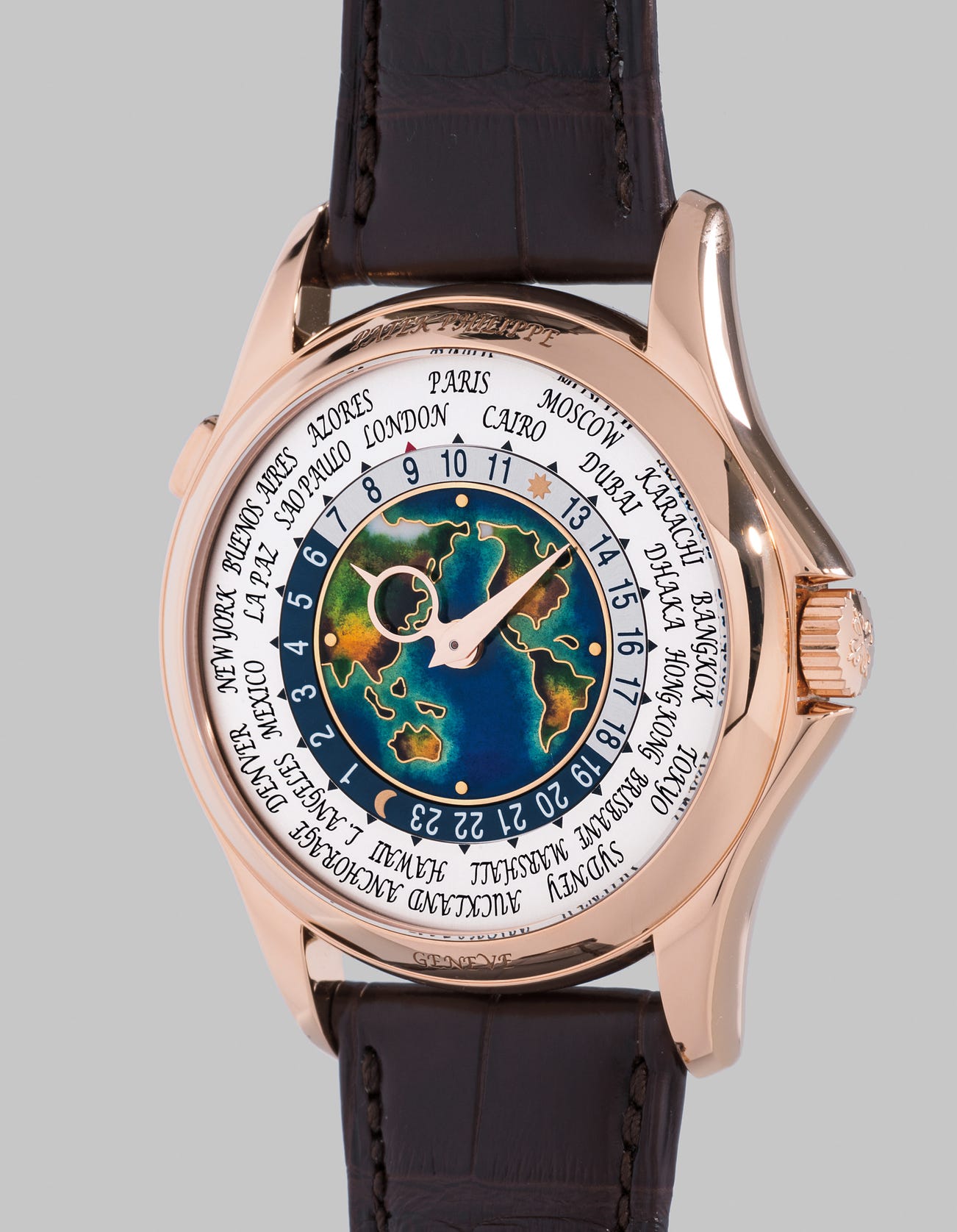 Patek Philippe was one of the first brands to embrace this new complication creating dials featuring beautifully crafted enamel maps of Asia, Americas, Oceana and Europe or exceptionally crafted guilloché centers.