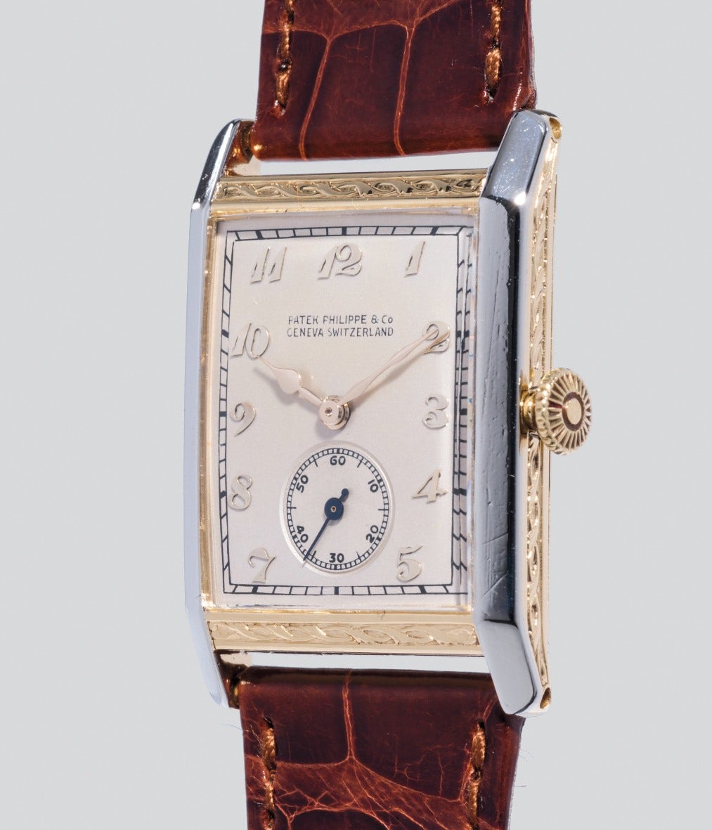 Scholarship tells us that only one other example with the same case and dial combination exist making the present watch a true gem for the collector of vintage Patek Philippe. It is also important to mention that the present watch spent close to a year within the Patek Philippe workshops in Geneva for a full restoration as attested by the accompanying invoice for CHF 17,917.