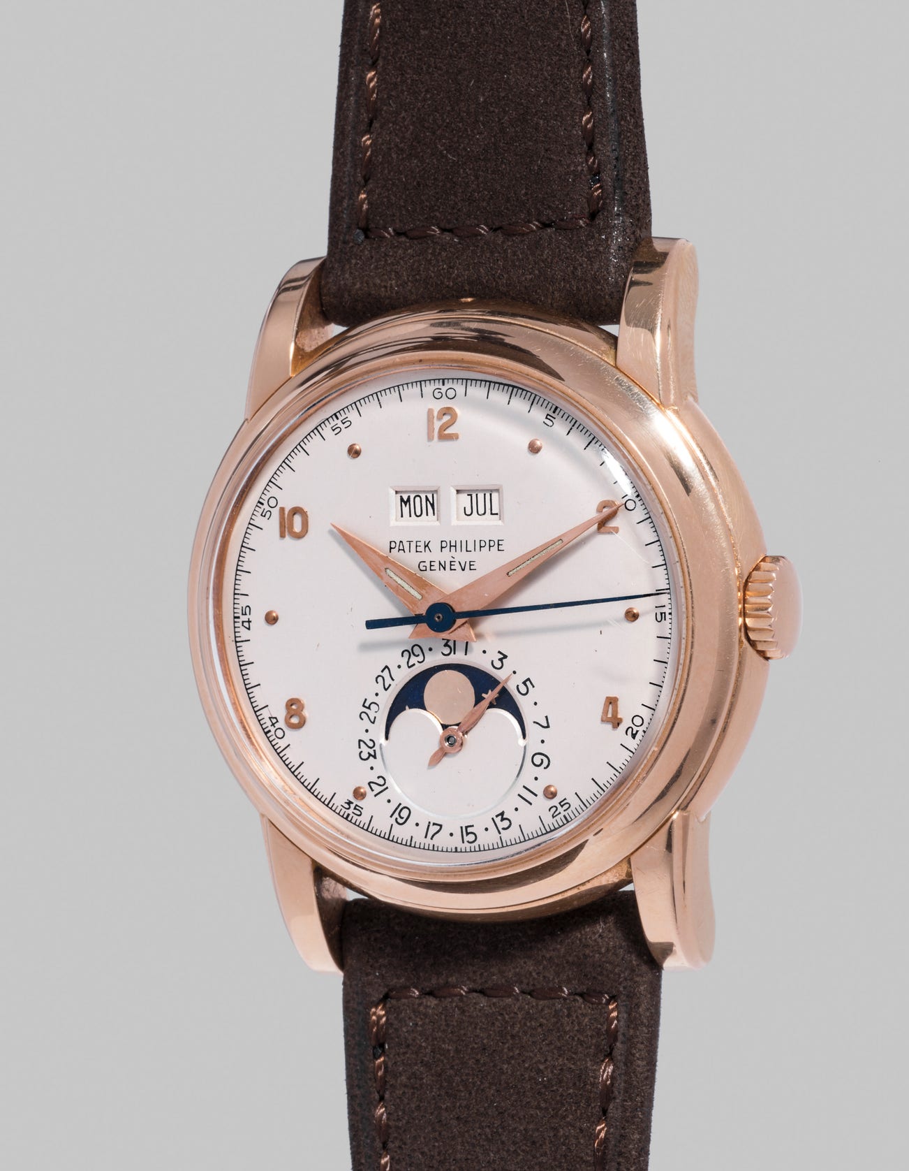 Reference 2497 was the brand’s first serially produced perpetual calendar wristwatch to feature centre seconds. It was first introduced in 1951, and is a gem of horological design with its balanced symmetry, spectacular curves, and large case size. In fact, reference 2497, along with its water resistant sibling reference 2438/1, is considered by many to be one of the most beautiful perpetual calendar wristwatches ever made.