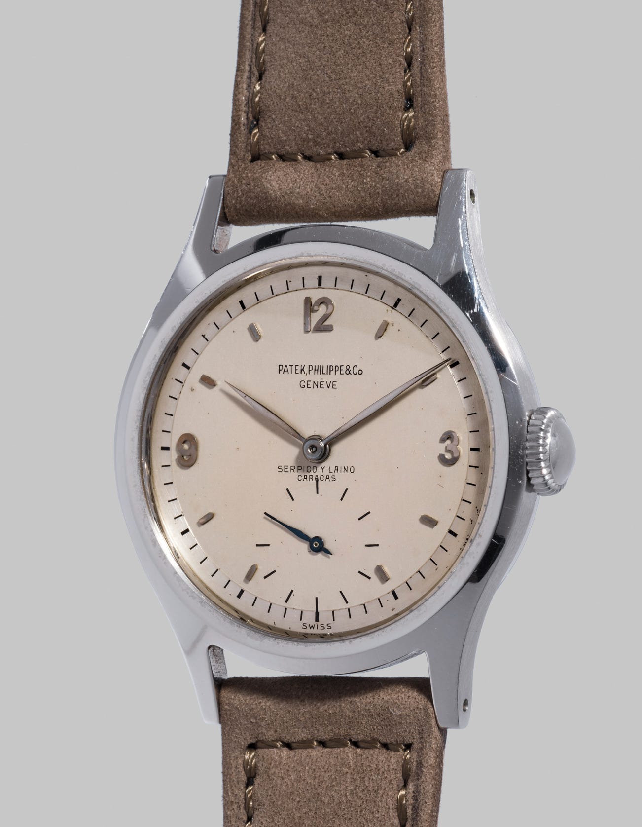 With an array of interesting details, this watch is an attractive and rare example, sure to delight scholars and collectors. It is furthermore the first example of a reference 565 retailed at Serpico y Laino to ever appear on the market.