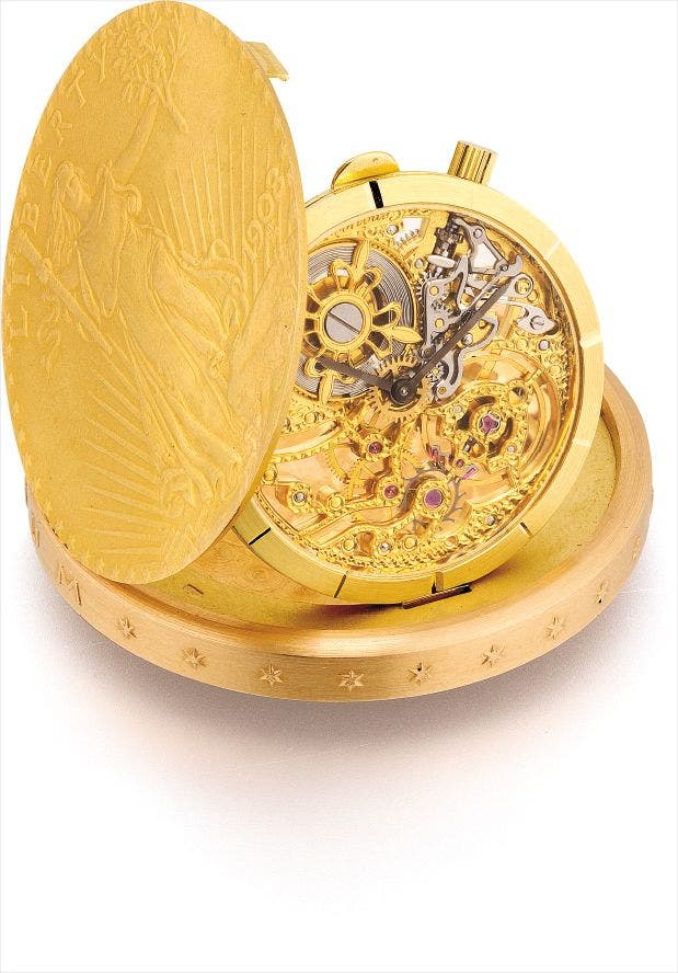 Patek Philippe manufactured a handful of different references of coin watches and used the following reference numbers: US$5 coin (Ref. 800), US$10 coin (Ref. 801), US$20 coin (Ref. 802 & 803), CHF100 coin (Ref. 804), Pesos 50 coin (Ref. 805) and others.