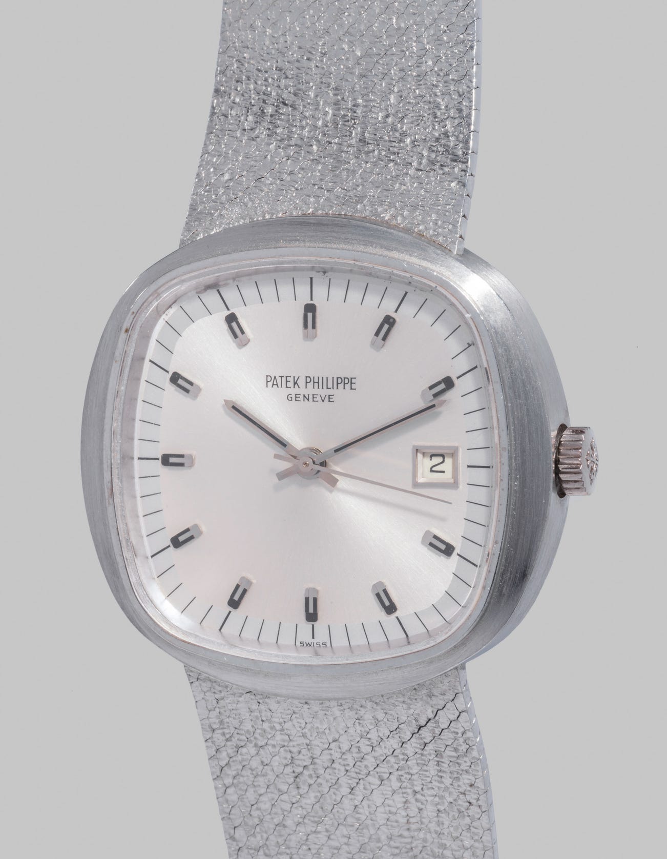 Patek Philippe introduced the reference 3587/1 in 1970 a watch that surprises by its pure machismo power and sheer weight of 194 grams! The large angular case is an ode to 70s cool, it is both edgy and sophisticated. The present lot is part of an ultra rare production run of which scholarship estimates only 18 were made in white gold.