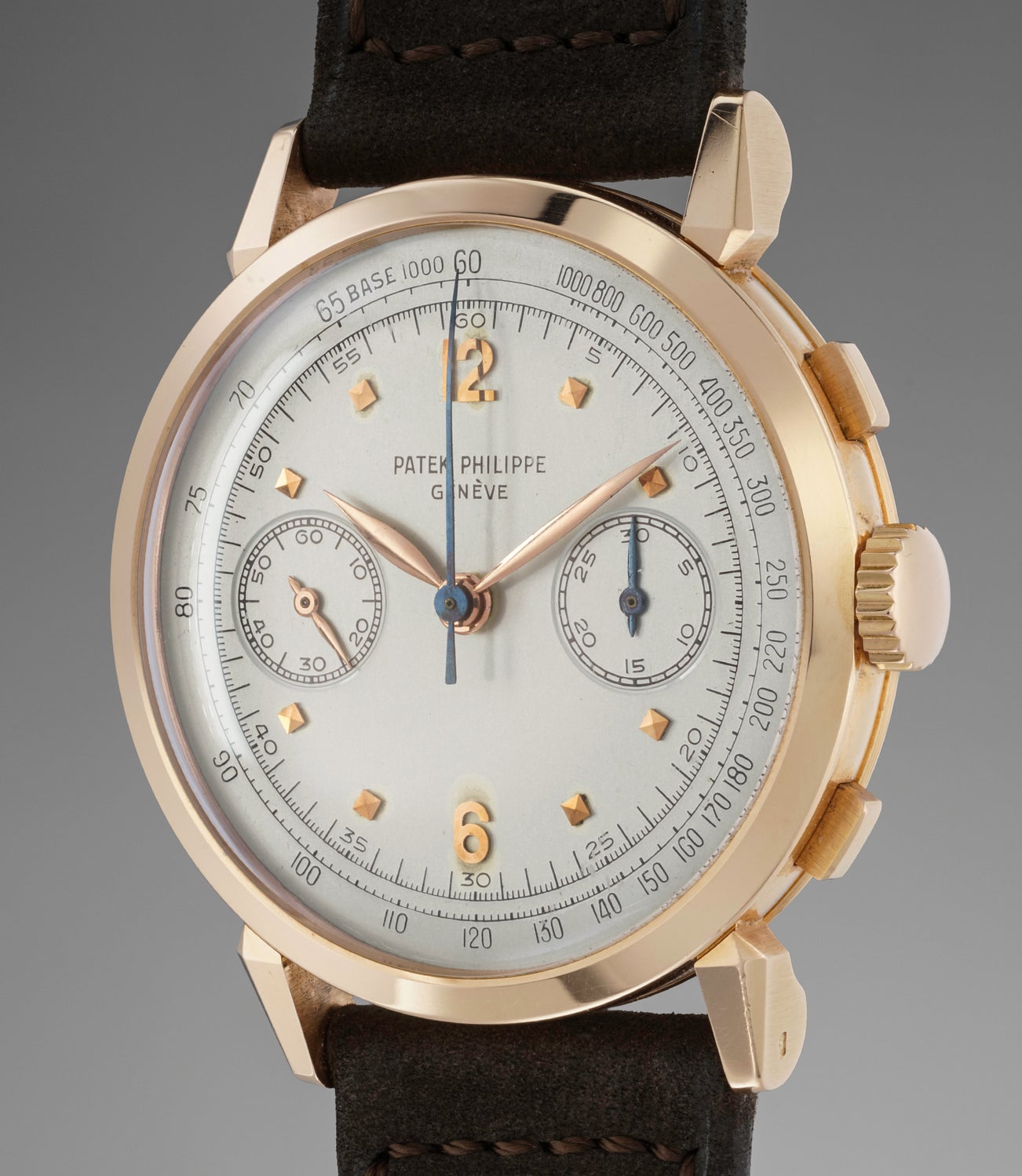The sharp lugs and crisp hallmarks are elements that make us believe that the case was most probably never polished, making the present chronograph one of the best examples to grace the auction market.