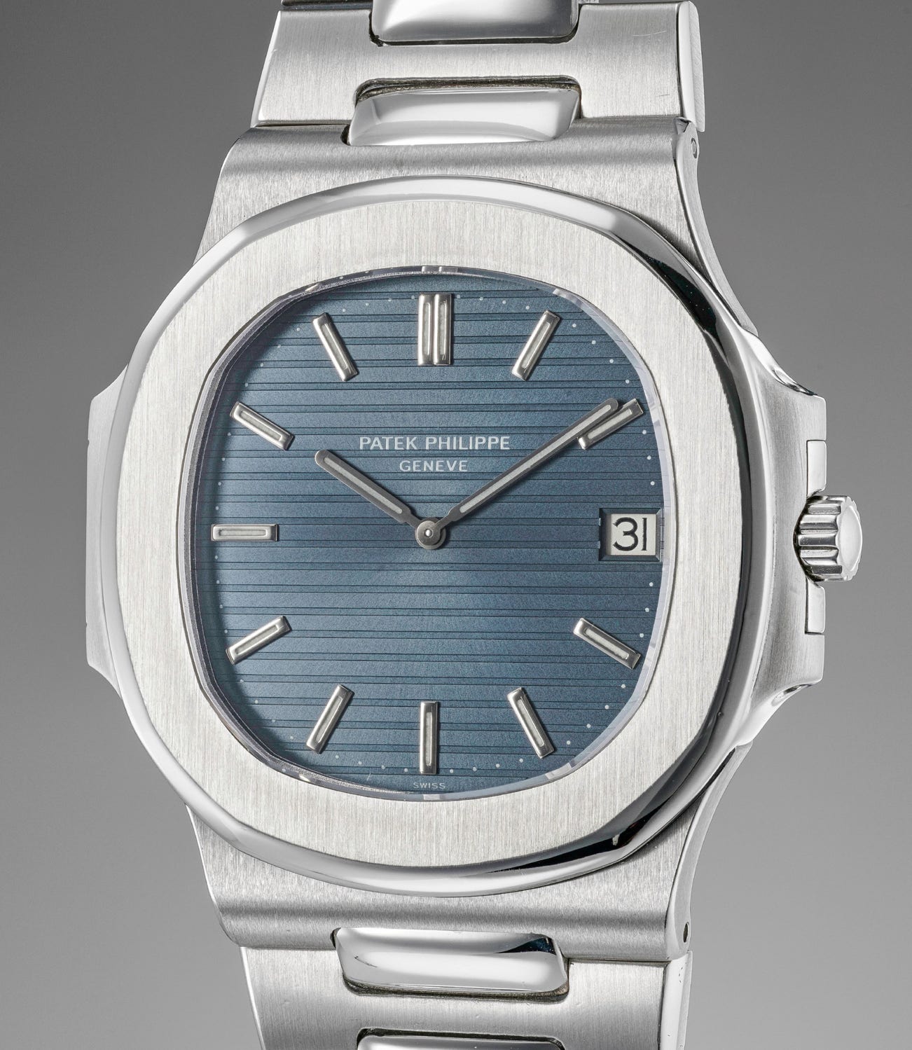 Patek Philippe produced two versions of the Nautilus ref 3700 in steel, 3700/01 from 1976 to about 1981 that featured a straight bracelet and reference 3700/11 which was in production from 1981 to 1990 has a tapered steel bracelet.