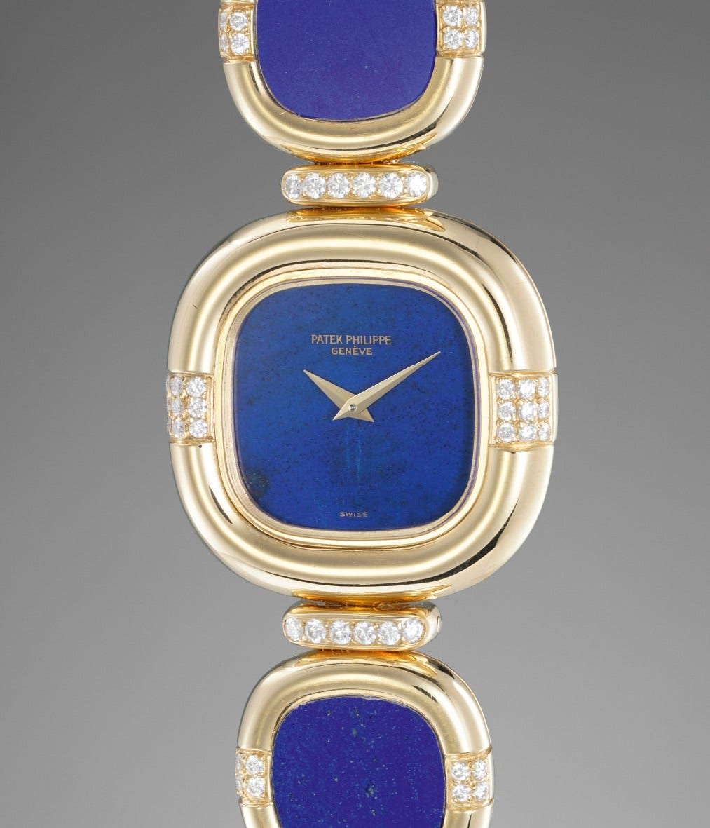 As with all Patek Philippe timepieces, the bracelet is made with utmost care and the highest standards in quality. Incredibly flexible, each panel is set with a lapis lazuli stone and linked by a row of diamonds. While incredibly fashionable during the 1970s, the robust proportions and eye-catching color scheme are still incredibly in-vogue today.