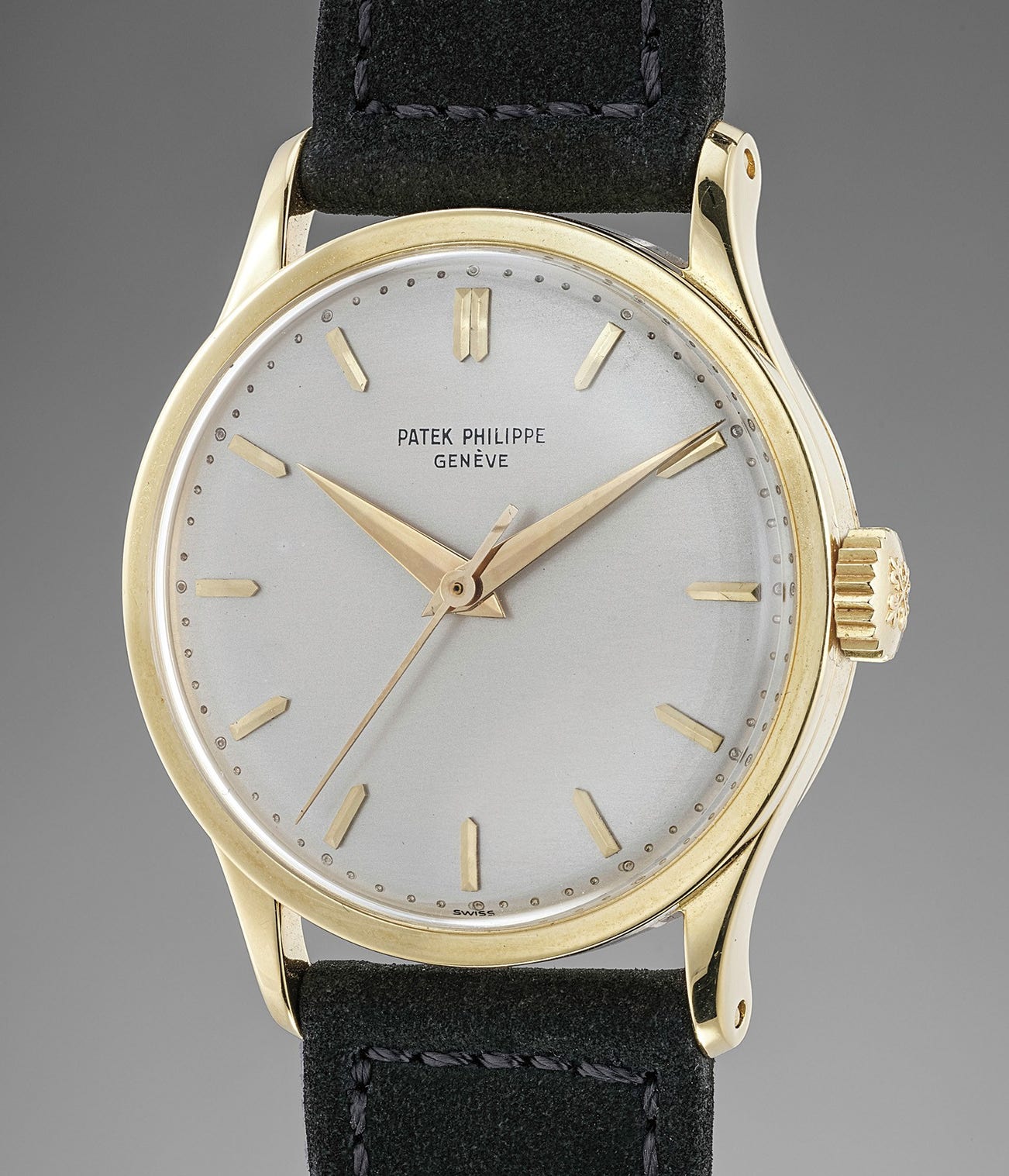 In production between 1938 and 1972, the reference 570 borrows elements of its case design from the reference 96, the original Calatrava, but it is significantly larger in diameter, measuring 36mm. While it was on the market the reference 570 was the largest time-only Patek Philippe wristwatch, the impression of size being further enhanced by the narrow flat bezel enabling a larger view of the dial.