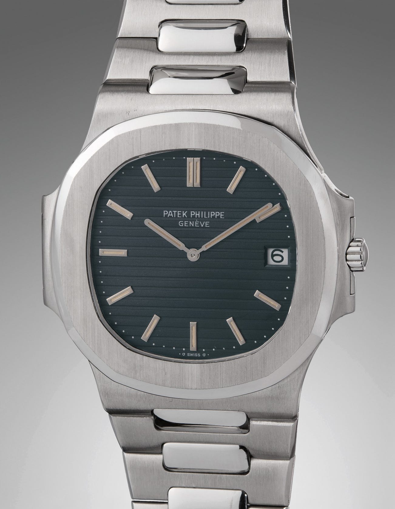 The "Jumbo" moniker refers to the 42mm case, which was certainly oversized for the era. While it was initially not well received, its popularity quickly grew, and has been a mainstay of Patek Philippe's collection until the present day. Patek Philippe produced two versions of the Nautilus ref 3700 in steel: 3700/1 from 1976 to about 1981 featuring a straight bracelet as is the present lot, and reference 3700/11, in production from 1981 to 1990, with a tapered steel bracelet.