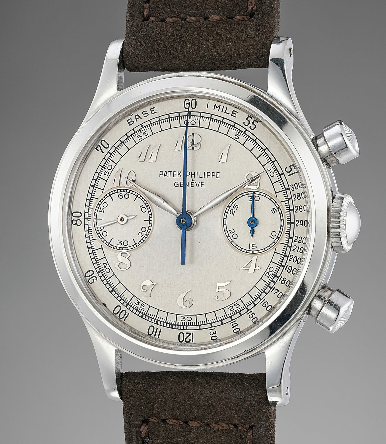 Amongst the rarest and most desirable of reference 1463 chronographs are those cased in stainless steel. Yet, to offer one with this dial configuration is a true anomaly. The present watch is one of two dozen known steel examples with Breguet numerals - absolutely astounding, considering that the reference was in production for approximately 29 years. Furthermore, the Patek Philippe Extract from the Archives is a collector's ultimate dream come true as it confirms the Breguet numerals.