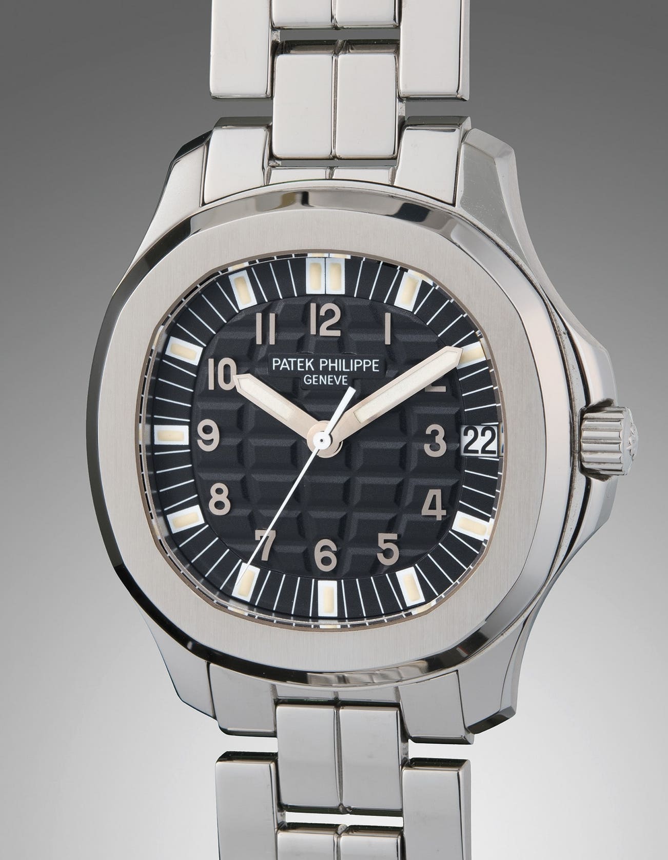 Even for a casual, sporty wristwatch, significant planning and attention to detail went into the design for the Aquanaut. The embossed, oversized guilloché dial is reminiscent of the brick design of both the steel bracelet and the rubber strap. Significantly more luminous material is used on the dial of the Aquanaut in comparison to the Nautilus, and the hands and indexes are consequently thicker. Both references share the vertically brushed flat bezel, though the Aquanaut has more angular corners, rather than the rounded, porthole-style corners of the Nautilus.