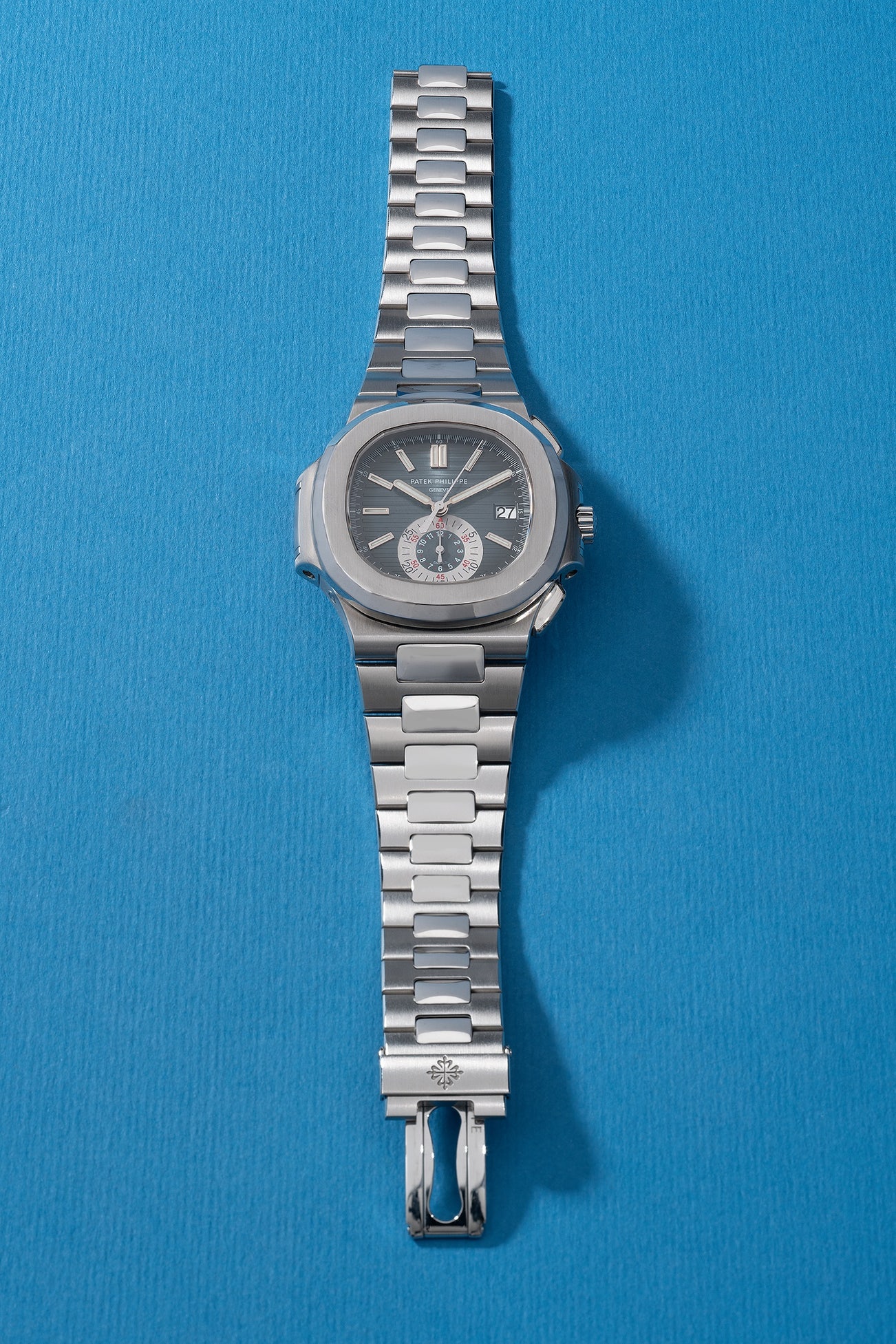 Due to the success of the Nautilus, Patek Philippe developed the collection with the release of yellow gold models and examples with diamonds. Over time there was a desire to expand further and the reference 5980 released in 2006 featured a chronograph mechanism with bull’s eye subsidiary dial at Basel during the 30th anniversary of the Nautilus. Featuring the caliber 28-250 C first used on the reference 5960, the first automatic annual calendar chronograph, Patek Philippe modified the movement for the reference 5980 to remove the date window.