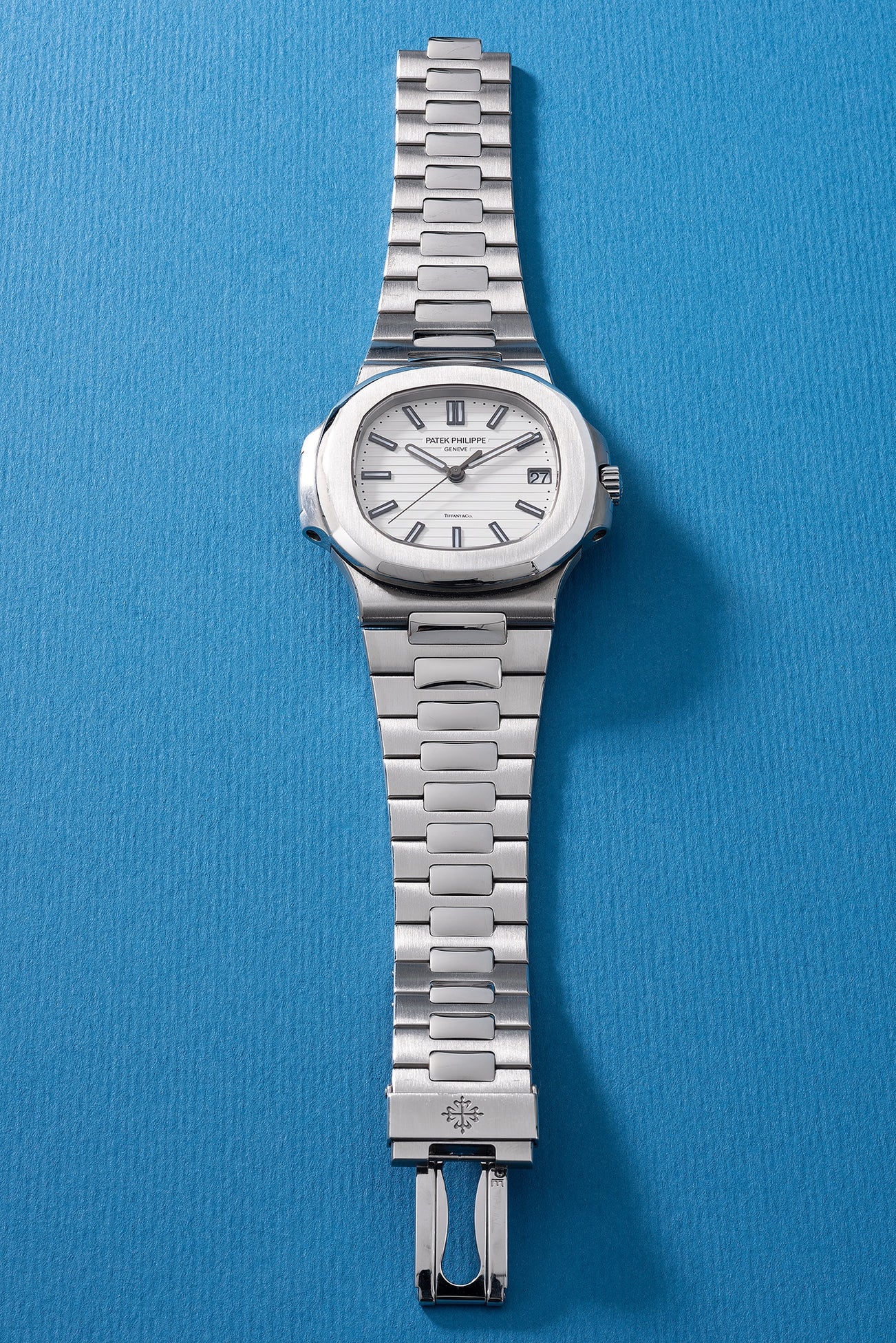 Three words and ten letters on the dial can make a world of difference: Tiffany & Co. The venerable jeweler has long been a purveyor of fine timepieces, starting in the 1840s with Patek Philippe. The present watch, double signed by Tiffany & Co., is in overall excellent condition and was conceivably never been polished in the past. It is also accompanied by all its original accessories, including the instantly recognizable Tiffany blue outer packaging and an original certificate signed by the jeweler. Fresh to the auction market according to our research, and the 3rd white dial reference 5711 double signed by Tiffany & Co., this watch is one of the most exciting and beautiful examples to ever appear in the public eye.