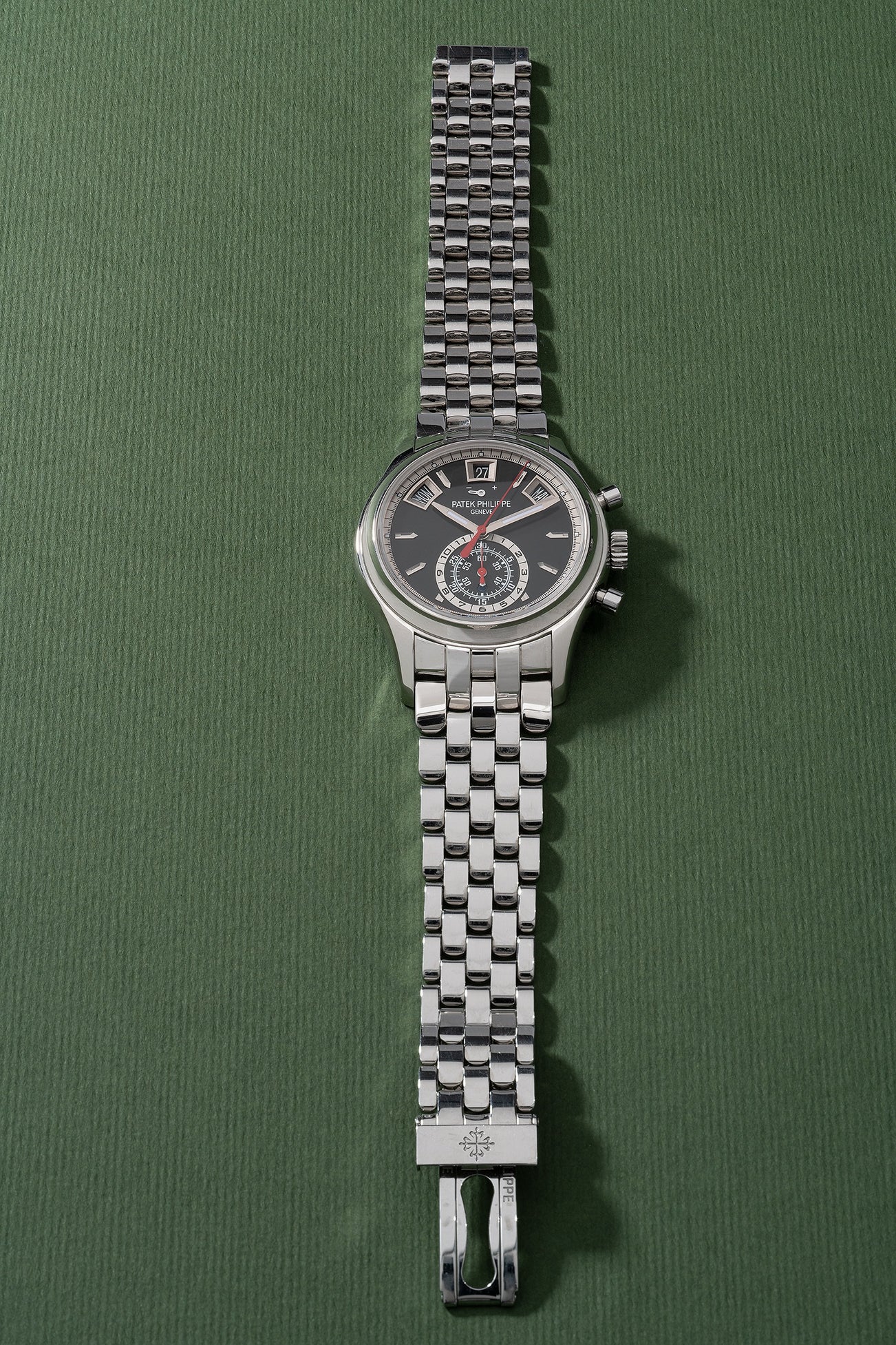 The present configuration, made in stainless steel with a black dial, was released in late 2017 and only offered for one year. Phillips is honoured to offer the first example of reference 5960/1A with black dial and bracelet at auction, which is not only fresh to the market, but also accompanied with original certificate, box and other accessories. It will be an absolute pleasure for any collectors to have in their collection, to own one of the most exclusive modern complications created by Patek Philippe.