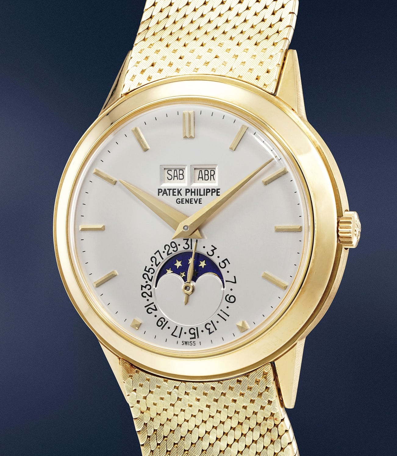 A very rare, impressive and important yellow gold automatic perpetual calendar wristwatch with moonphases and bracelet