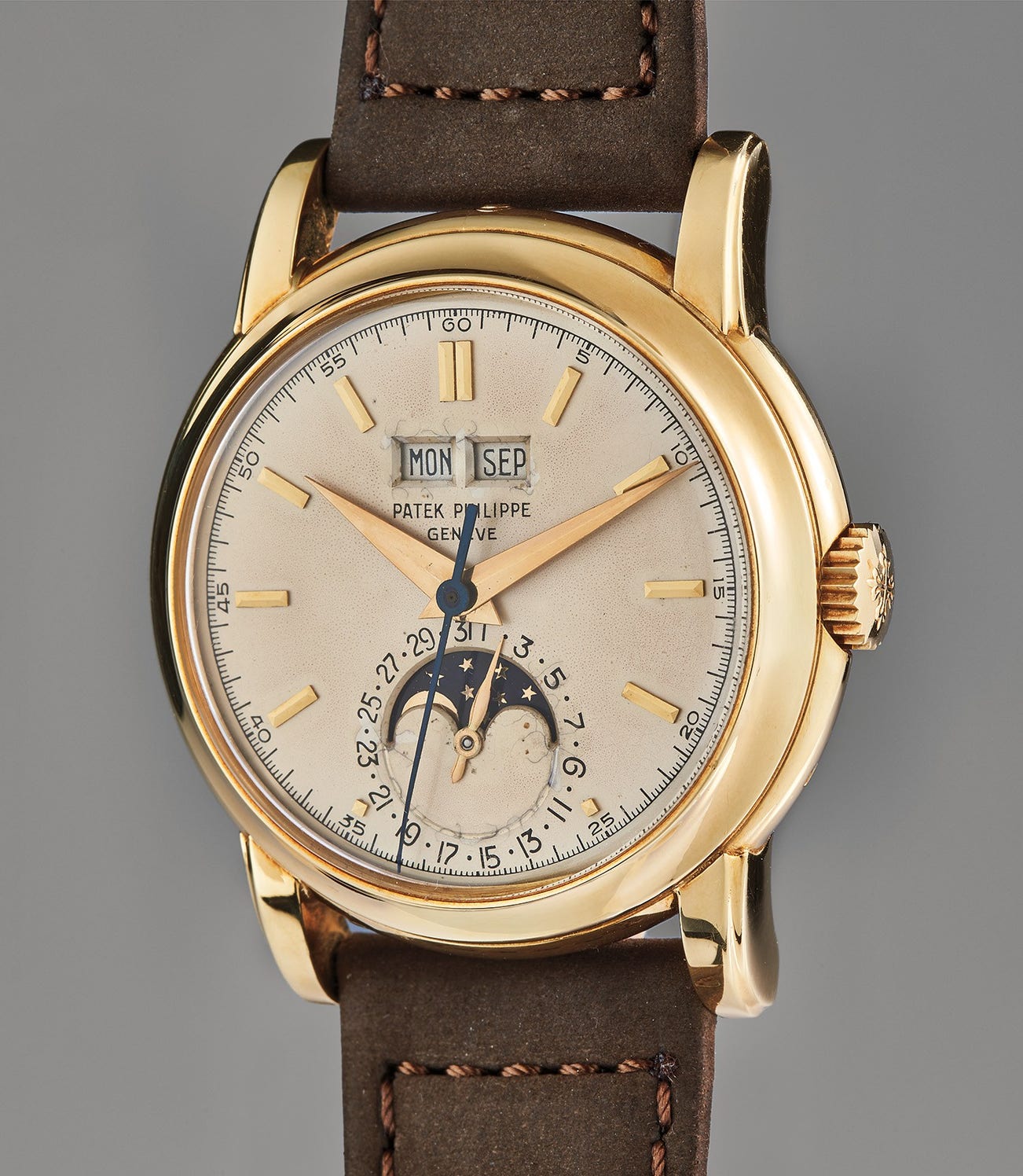 The caliber 27 SC Q was the most exclusive of mechanical movements with superb, hand-finishing and decoration throughout, as attested by the Geneva Seal stamp. Appearing for only the second time at public auction, it originally came to market consigned by the family of original owner when first sold in 2011. When the reference 2438/1 was first released it was a revolutionary timepiece for its large size and technical movement – so ahead of its time, it’s perfectly sized for today’s tastes. Along with its companion piece the 2497, these two Patek Philippe watches are amongst the most classic mid-20th century timepieces. The present lot isvnot only wonderfully well-preserved and exceptionally rare but it remains to date the only Patek Philippe vintage perpetual calendar with a screw down caseback making it an outstanding choice for the discerning collector.