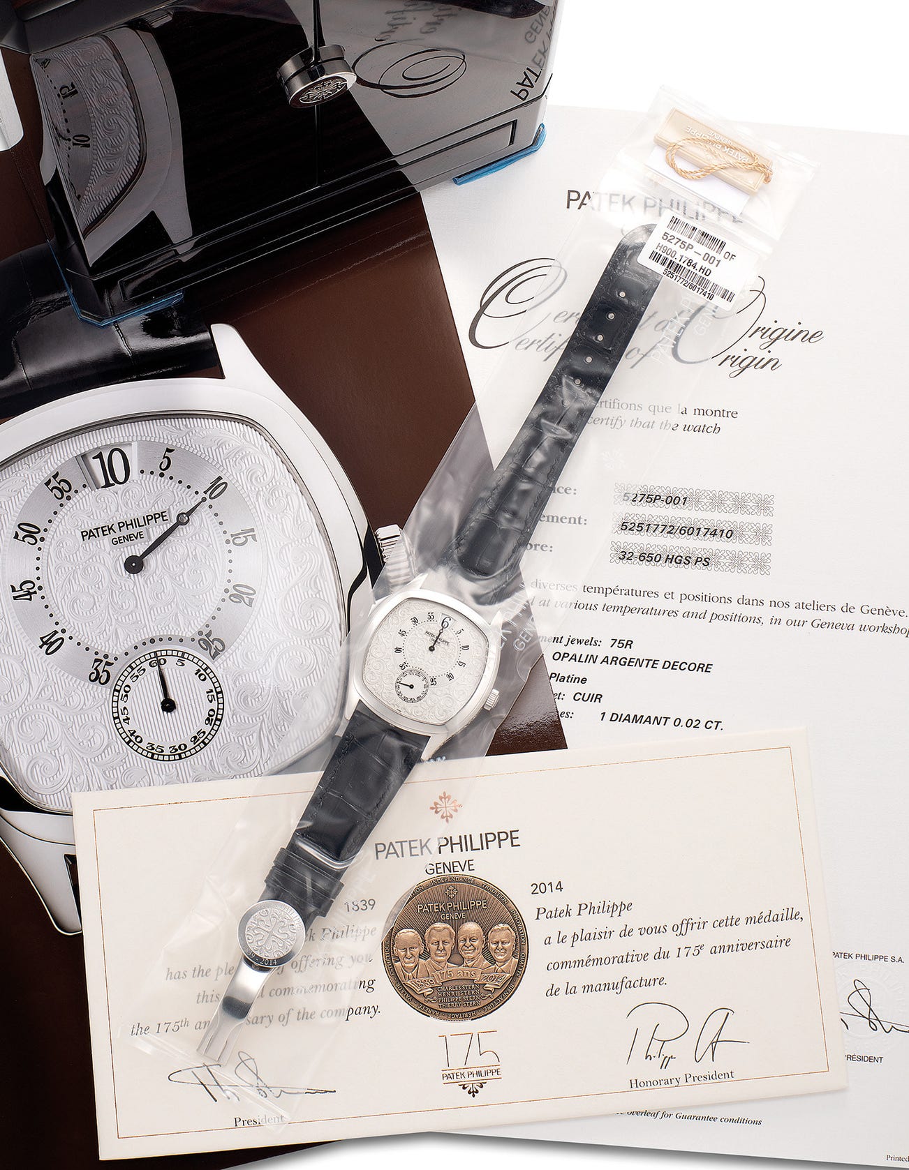 Offered in single factory sealed condition and fresh to the market, the present Patek Philippe reference 5275 epitomizes the technological excellence and the phenomenal artistry that is clearly presented in every single timepiece that leaves the manufacturer. Preserved in unworn status and complete with the original Patek Philippe Certificate of Origin and its accompanying set of accessories, the present example is with no doubt highly important and rare.