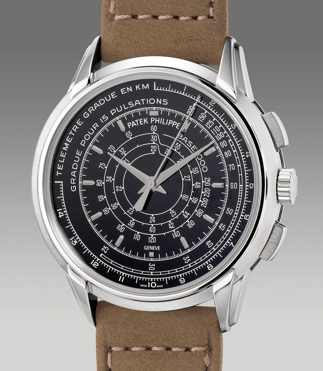 The present example is finished in a refined black lacquered dial, encircled by three unusual yet beautiful scale indication that provides instantaneous measurements: a telemeter for distances, a pulsometer for heartbeats, and a tachymeter for speed. Powered by a highly regarded Patek Philippe sealed in-house self-winding caliber CH28-520 with 50 hours of power reserve, the chronograph features a column-wheel with vertical clutch allowing for the chronograph to function without disruption on timekeeping and measurement accuracy.