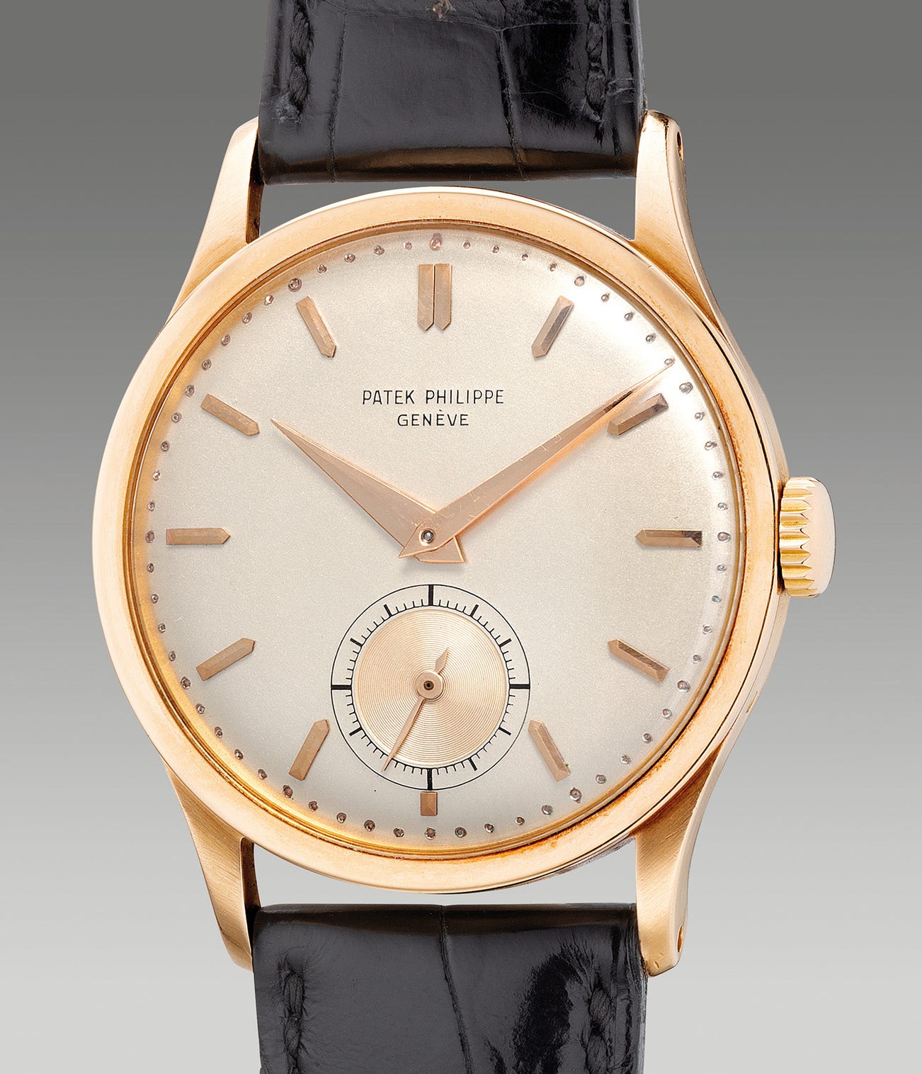 The present example in 18K pink gold from 1954 confirmed by a Patek Philippe Extract from the Archives belongs to the second series powered by cal. 12”’400 featuring small seconds at 6 O’clock.