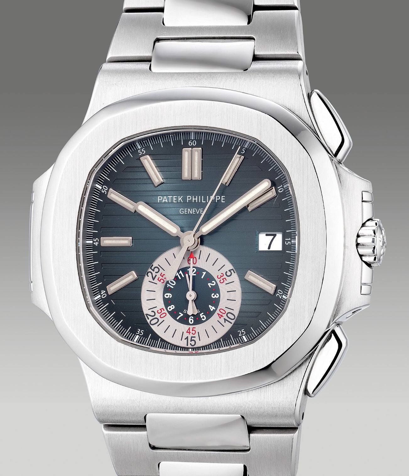Launched alongside with the recently discontinued reference 5711 in 2006, the blue ribbed stainless steel ref. 5980 embark upon a disruptive design to the rather minimalist appearance of the classic Nautilus. The ref 5980 powered by cal. CH28-520 is the firm’s very first in-house self-winding chronograph model from the lineage, never before does the dial feature a co-axial “bull’s eye” subsidiary chronograph counter. The coveted model was discontinued in 2014.