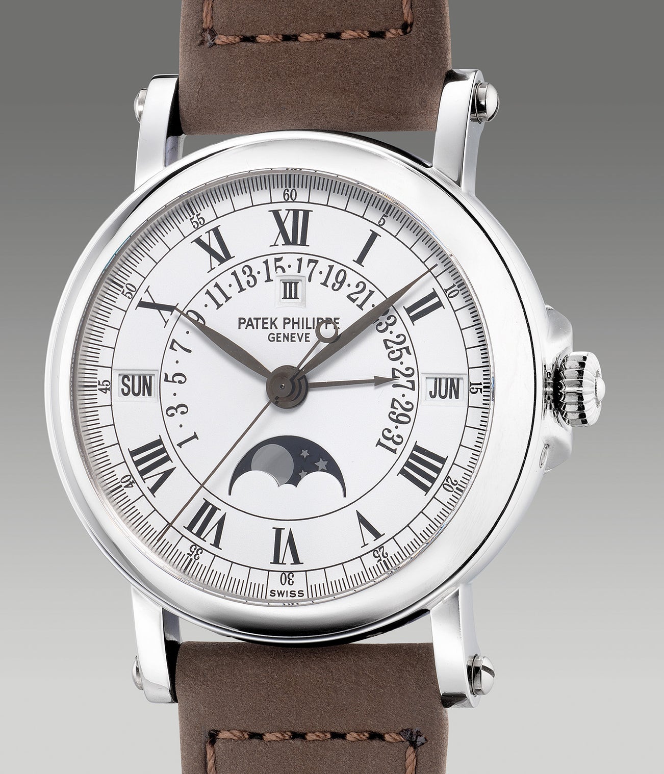 The present example ref. 5059P-001 from circa 2006 is perhaps one of the last examples before it was discontinued making way for the new ref. 5159. Offered in excellent overall condition and accompanied by its original Certificate of Origin and winding presentation box, this is a great opportunity to acquire an understated perpetual calendar wristwatch manufactured by none other than Patek Philippe.