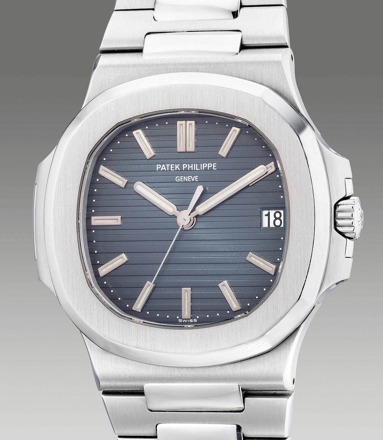 To commemorate the 30th anniversary of the Nautilus, Patek Philippe released the ref. 5711 in 2006 along with other references featuring various complications such as the ref. 5712 and 5980. The Nautilus ref. 5711 features essentially the same aesthetics as its very first model with some minor modern upgrades such as a larger case size, a new movement, a sapphire display caseback, an improved bracelet with a smoky grayish blue ribbed dial. This new design had already been tested on the white gold reference 3711, launched in 2004 and which was replaced by ref. 5711 .