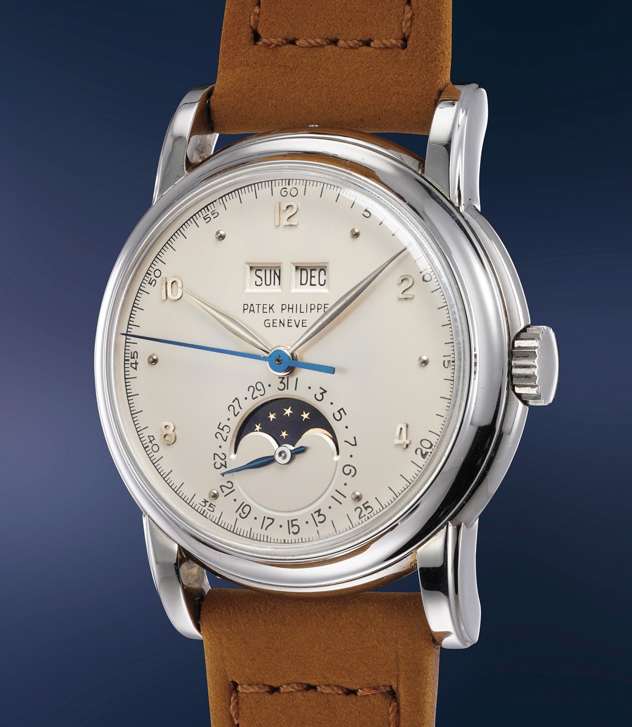 The 1940s and 1950s were the golden years for Patek Philippe's perpetual calendar wristwatches. During this period, yellow gold watches were de rigueur among gentlemen. White metal watches, on the other hand, were considered completely audacious and daring. This sentiment is even more pertinent when one considers that no more than ten Patek Philippe perpetual calendar complication wristwatches were cased in white metal during the 1940s and 1950s.