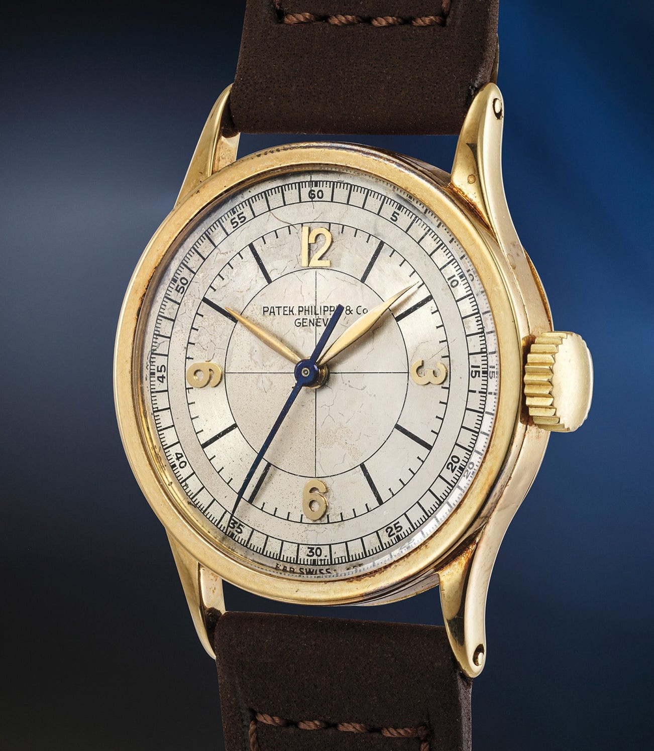 In fact, few examples of the reference were fitted with different dials. Early examples are known with no subsidiary seconds, some pieces feature Roman or Arabic numerals at 3, 6, 9 and 12, other feature Breguet numerals, some are known with two-tones finish, and some, such as in this instance, not only present an incredibly attractive two-tone sector dial, but even the mechanical modification of the indirect center seconds.