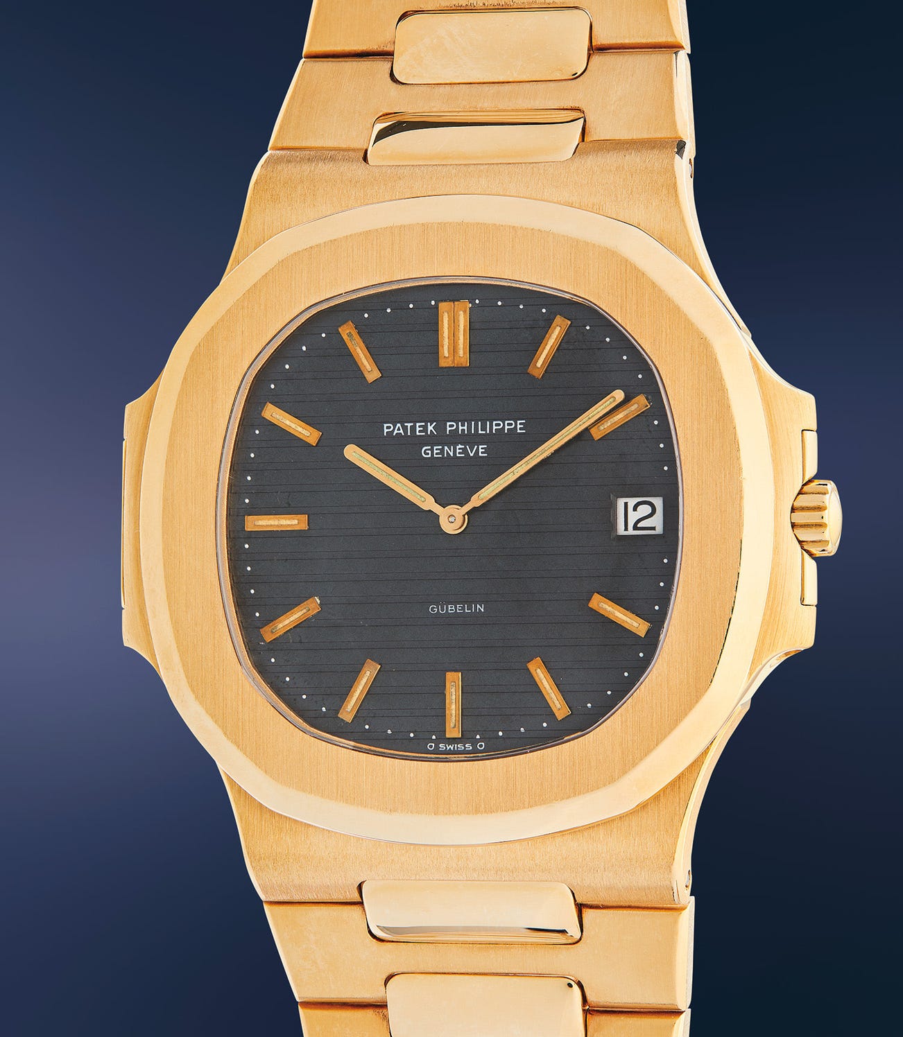 The present watch is only the third ever Gübelin-signed Nautilus 3700/1 in yellow gold to appear at auction and has never been offered publicly. It is at the same time a stunning example, preserved in all original condition. Its dial is flawless and original to the watch. The original, Gay Frères-signed flat Nautilus clasp is correct, and the bracelet remains absolutely rigid and tight throughout, with a beautiful and unpolished Calatrava cross on the bracelet clasp.