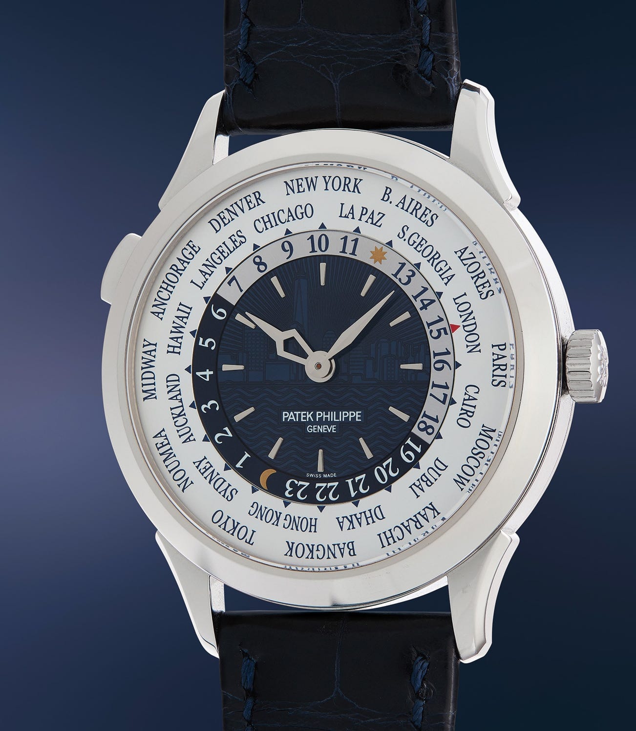 Patek Philippe’s reference 5230G, New York Edition, was a celebration of both the brand’s long, prestigious history, and their landmark, 2017 exhibition “Patek Philippe -The Art of Watches Grand Exhibition.” A comprehensive 10-day event featuring over 450 curated timepieces from the Patek Philippe Museum, it was the largest watch-related exhibition ever held in the United States. Accordingly, Patek Philippe issued nine limited edition timepieces, including the present reference 5320G - a stunning world-time wristwatch featuring a metallic, Art Deco relief of the Manhattan skyline on the dial.