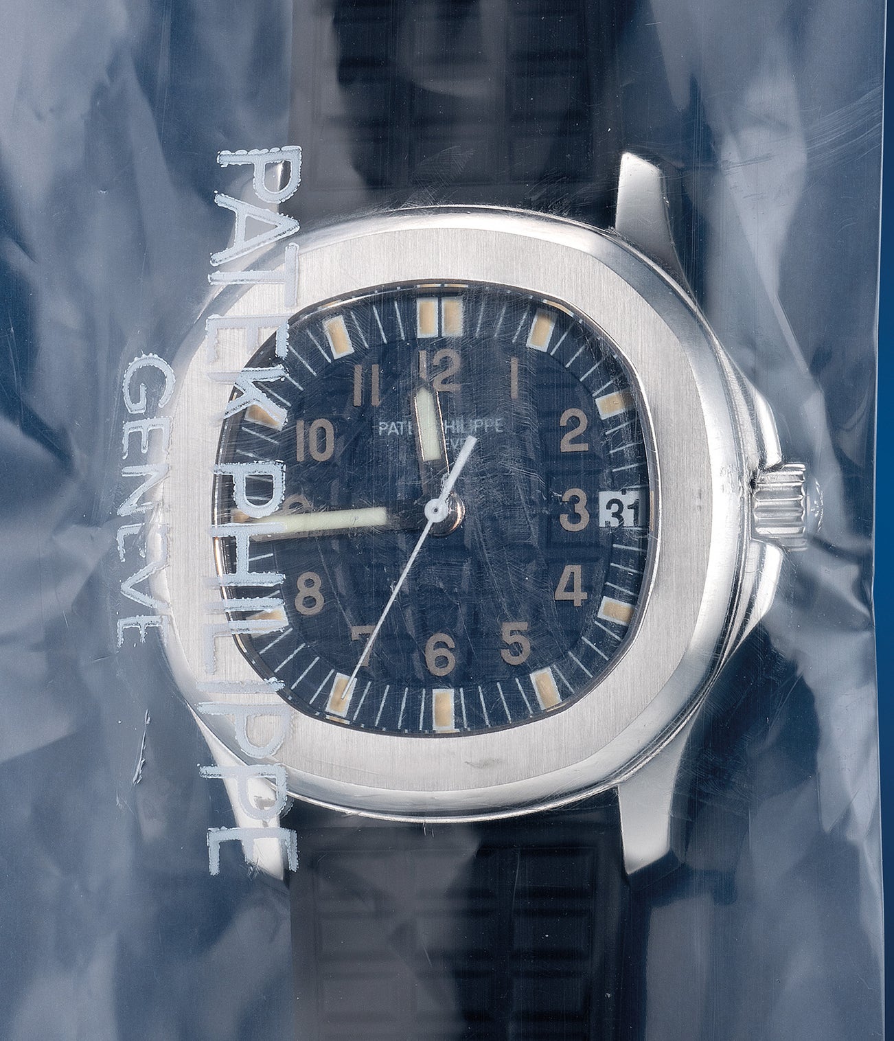 Fresh-to-the-market and offered in remarkably well-preserved condition remaining sealed since its last service from Patek Philippe. The present example comes with two additional rubber strap in two cool shades of blue. Accompanied with its Certificate of Origin, it even retains its original blue Patek Philippe presentation box. Considering that only a handful of examples of this “Japan Edition” are known from the public market, it is safe to say this is a highly exclusive opportunity to own one of the most unusual and charismatic Aquanaut models ever produced.