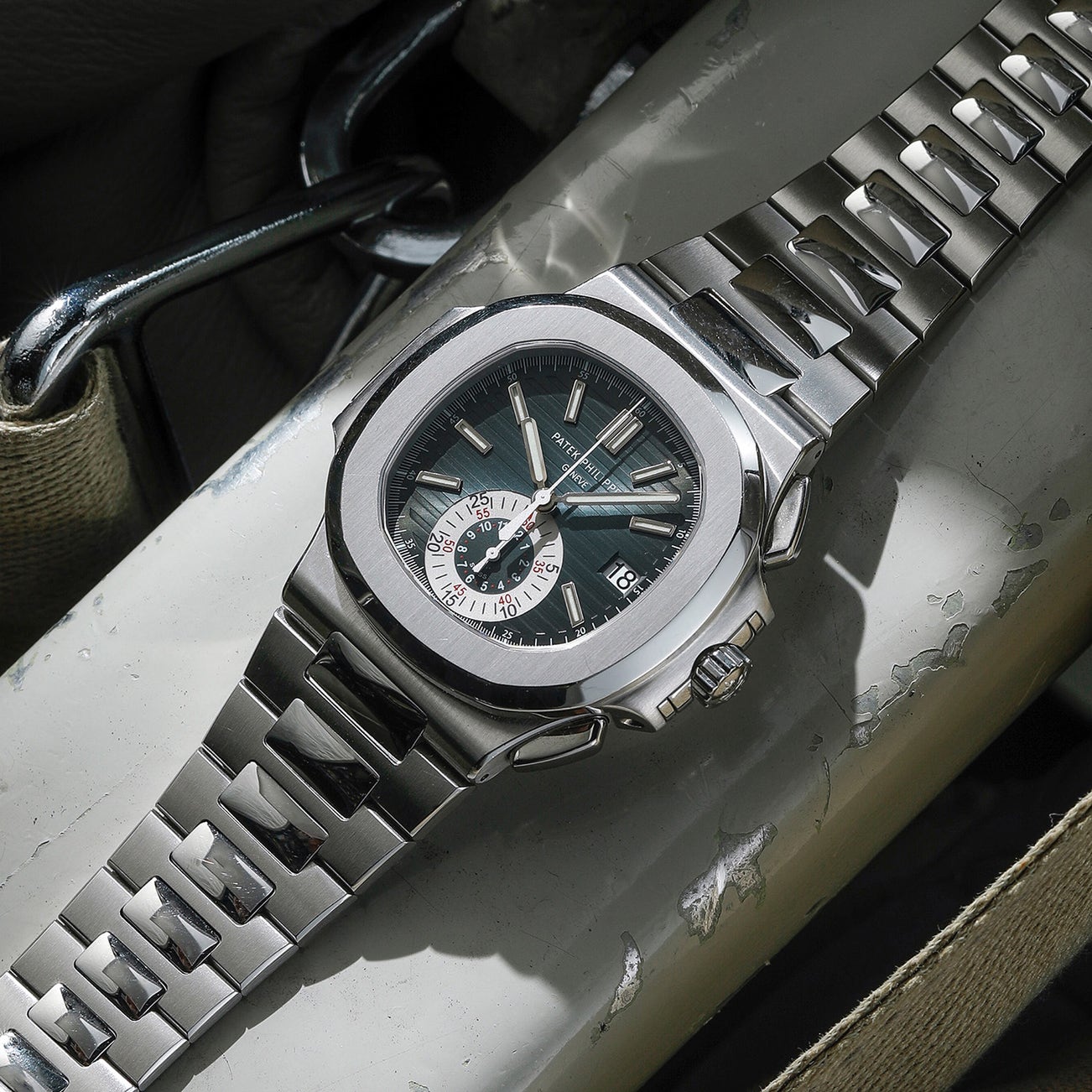 - Stepping away from the usual chronograph layout, the dial is further simplified via a subsidiary dial combining all registers into one, forming what is dubbed as the “bull’s eye” counter. Originally available in stainless steel with bracelet, 18K pink gold with a leather strap for early examples and the latest iteration in 18K pink gold with a matching bracelet, Stainless steel examples have been discontinued in 2014 and replaced by the reference 5990, the timepiece has since then been one of the most sought after Patek Philippe references since.