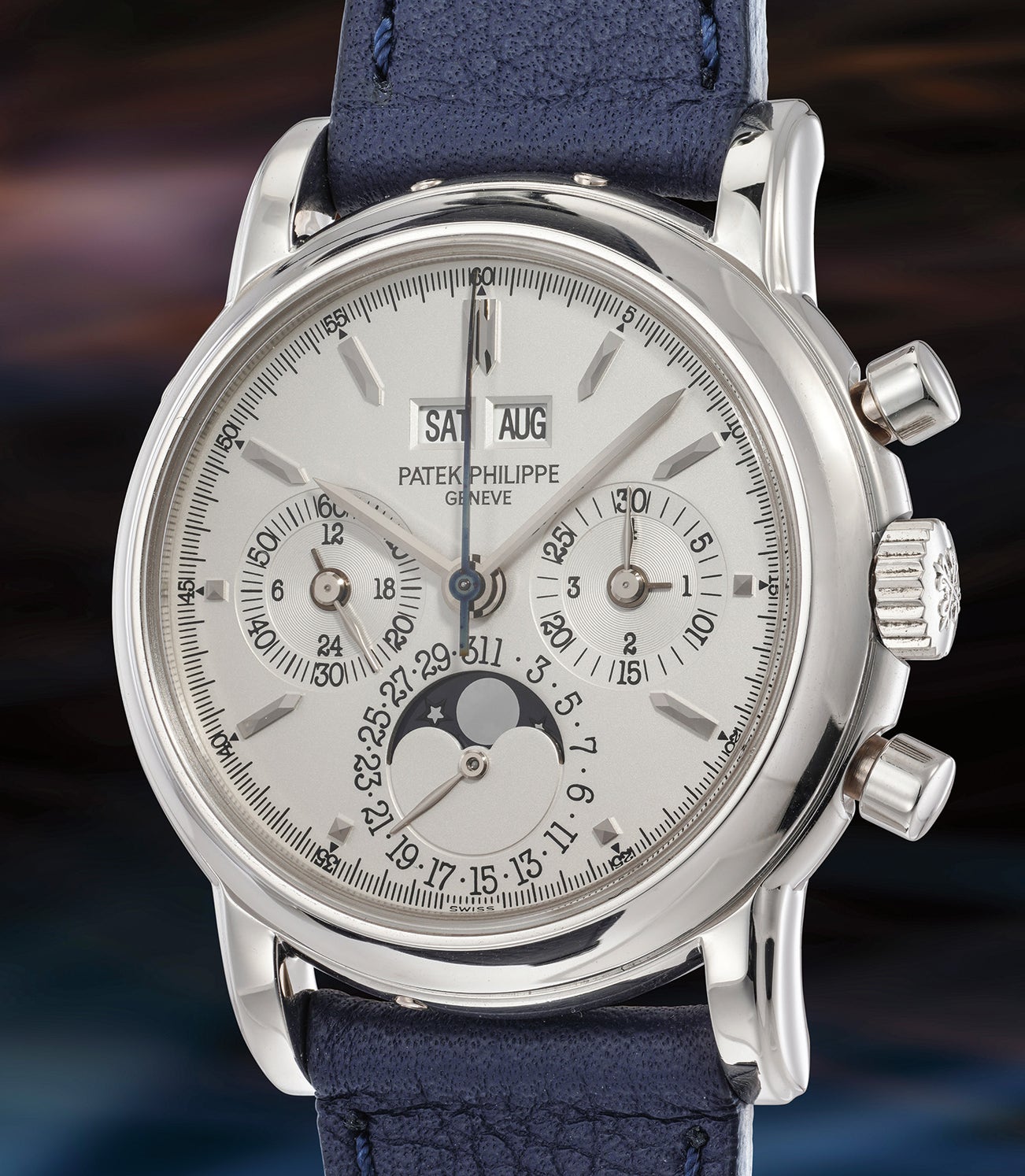 While upholding the distinctive aesthetics reminiscent of both the reference 1518 and 2499, the reference 3970 introduced notable enhancements, including a leap year and 24-hour indication for the first time. Available in yellow gold, pink gold, white gold, and platinum, like the present example, the reference went through a total of four series during its impressive production span of over 19 years, concluding in 2004. It is estimated that more than 4,000 examples of the reference 3970 were crafted throughout its production tenure.