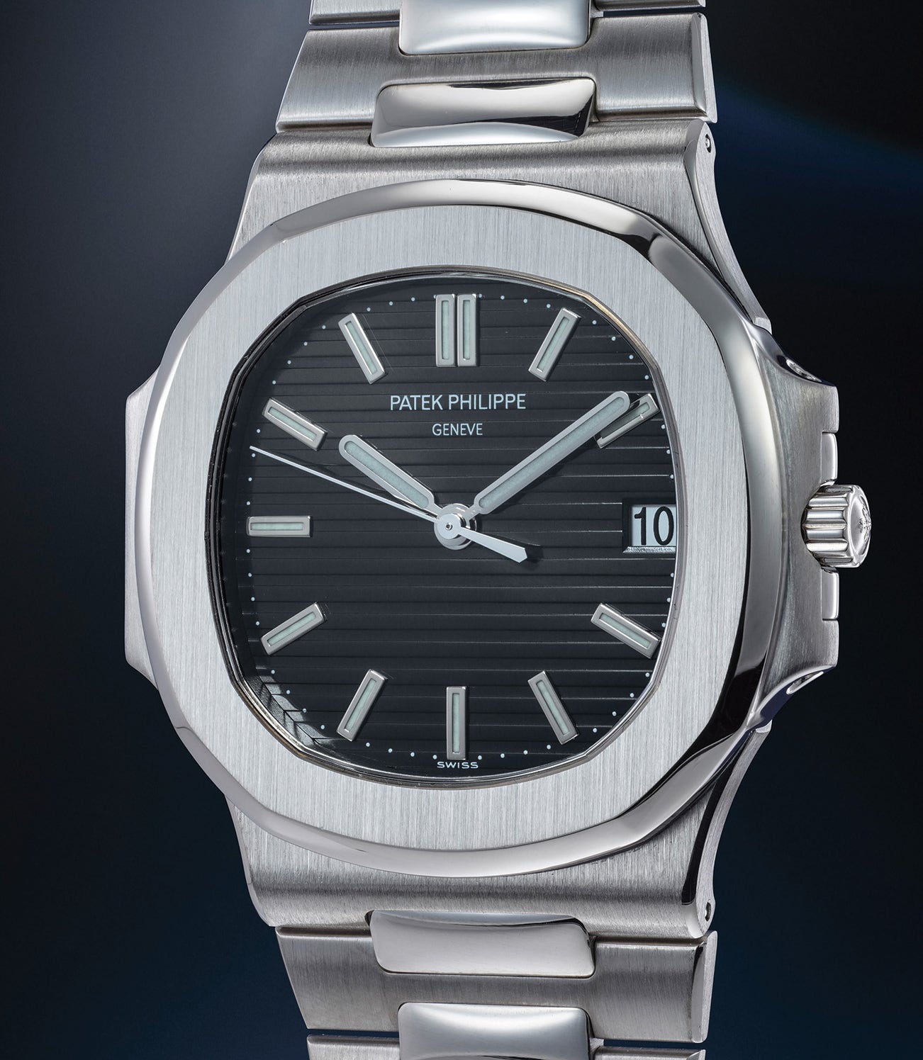 Every bit a Nautilus with its porthole shaped case, integrated bracelet and straight ears, reference 3711 was more than a remake of the iconic reference 3700. It was offered only in a white gold case but slightly thicker to make room for a sapphire caseback and saw the addition of a seconds hand. More importantly, what truly sets it apart is the black dial (as opposed to the blue/grey dials of the 3700 and later the reference 5711).