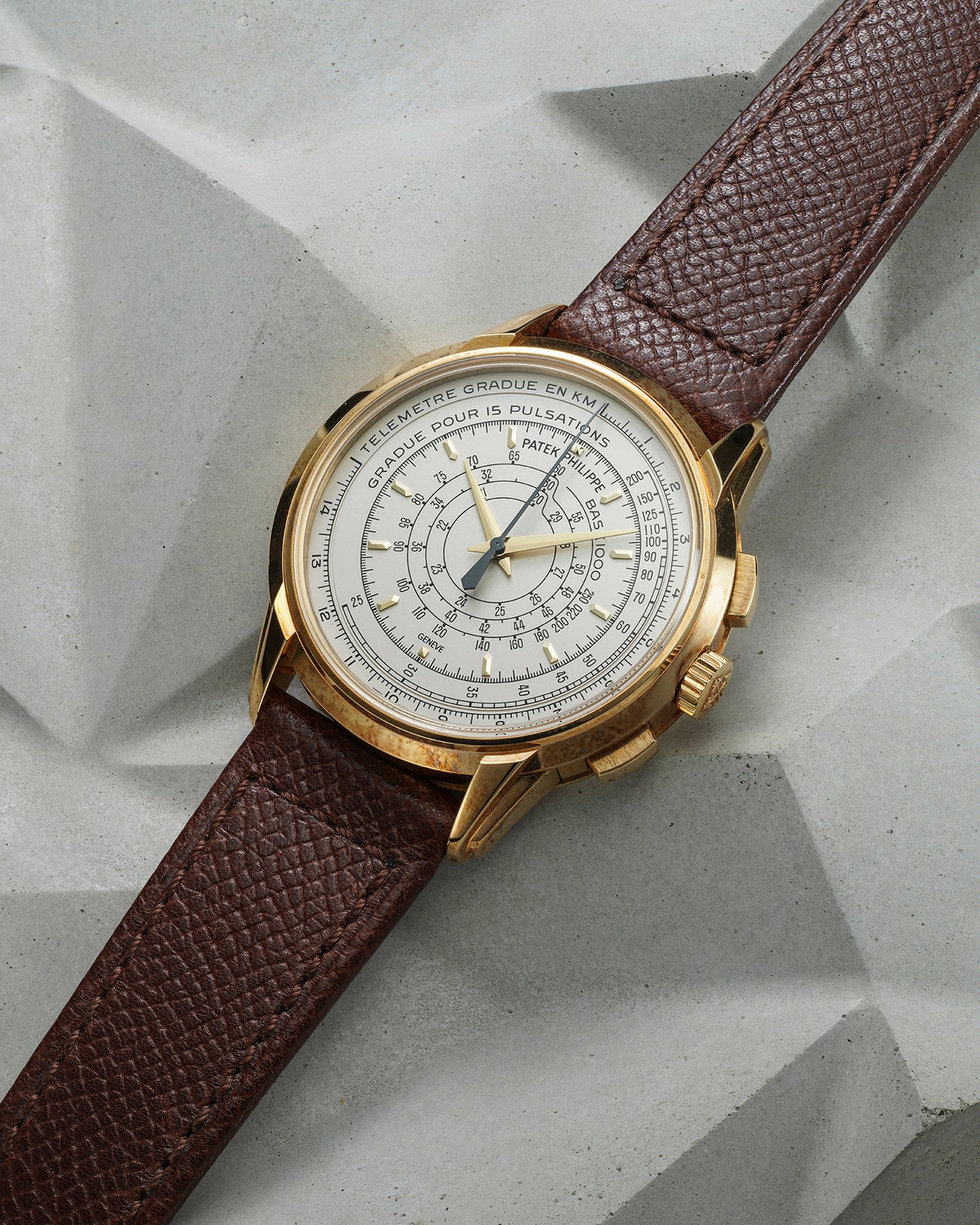 - A marriage of tradition and modernity, it features a generous 40mm case of very complex construction, defined by the heavily stepped lugs. The design of its chronographic complication harkens back to the multi-scale chronographs of the first half of the 20th century. Devoid of a minute counter, it is effectively a 1-minute chronograph, thus intended to be used only in conjunction with the multi-scale dial to measure either speed (tachymeter scale), distance (telemeter scale) or heartbeats (pulsometer scale).