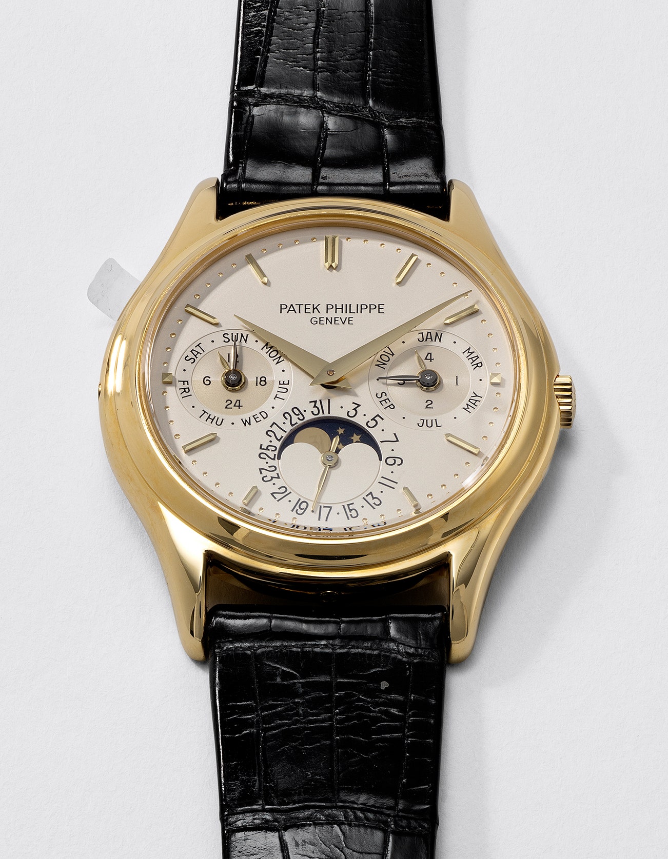 Encased in a lovely yellow gold case, the present watch from circa 1987 is offered with its Certificate of Origin and was subsequently sold in Osaka as indicated by its Patek Philippe Japan registered guarantee, dated August 1994. Bearing a movement number of 770’765 and a case number of 2’839’221, this timepiece is the 104th example from the first series that has resurfaced in the market. Delivered with its full set of accessories, the stunning ref. 3940 at hand is preserved in excellent overall condition, offering collectors a fantastic opportunity to acquire a coveted, elegant and timeless perpetual calendar timepiece.