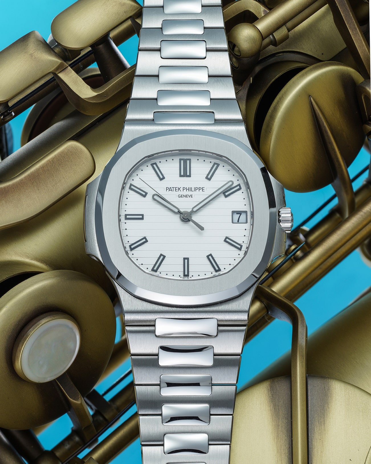 - Exuding an irresistible charm, the present Patek Philippe reference 5711 with white dial is offered in excellent overall condition and complete with its set of accessories.