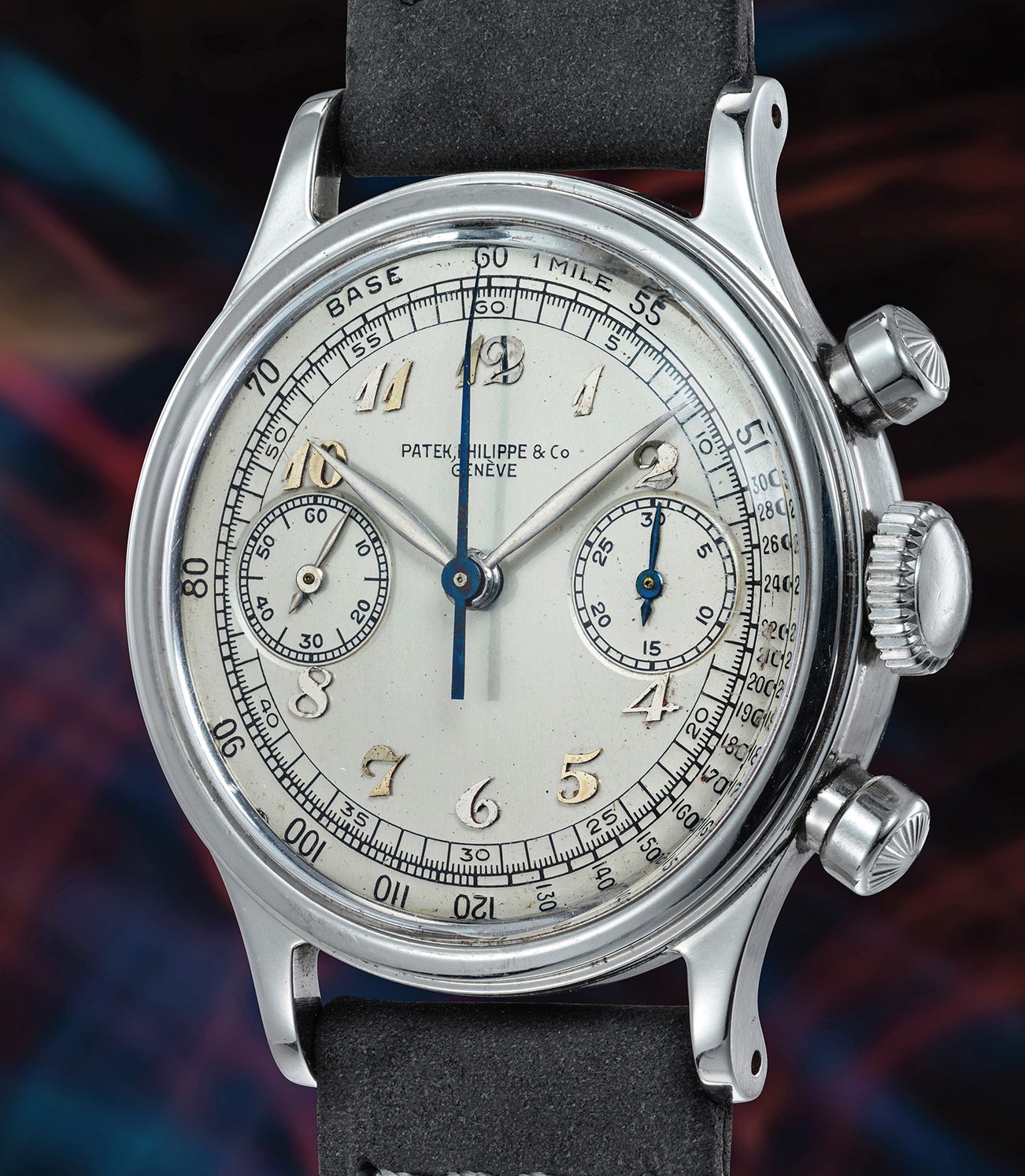 Fresh to the auction market, the present piece elevates itself above and beyond a “normal” steel 1463, as it features a Breguet numerals dial. No more than two dozen examples are known featuring this exclusive configuration - an astoundingly exiguous number, considering that the reference was in production for approximately 29 years. Such rarity is coupled with the enormous attractiveness given by the flamboyant design of the numerals, which are in contrast with the sportier ethos of the watch but at the same time - possibly exactly due to this contrast - end up proving themselves a perfect complement - even an exaltation - of the overall aesthetics of the piece.