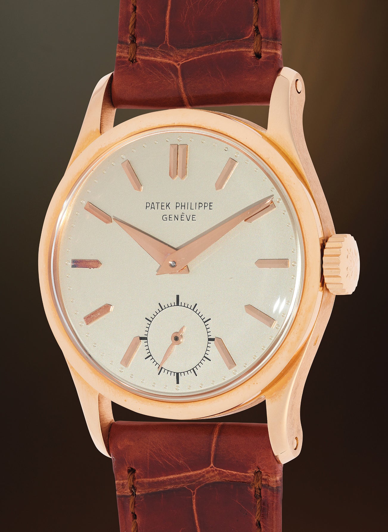 Throughout its lengthy production cycle, from 1932 until 1973, a wide array of variations were made, with a diverse range of dials in combination with case metals – most often in yellow gold, but also in stainless steel, pink gold, white gold, and platinum as well as two-tone iterations. The present model in 18K pink gold is fitted with a beautifully preserved silvered dial with pink gold baton indexes and subsidiary seconds. Crisp hallmarks and lightly oxidized baton indexes indicate very careful treatment with regards to the condition of this watch, and a recent service from Patek Philippe ensures this 96 is wrist ready.