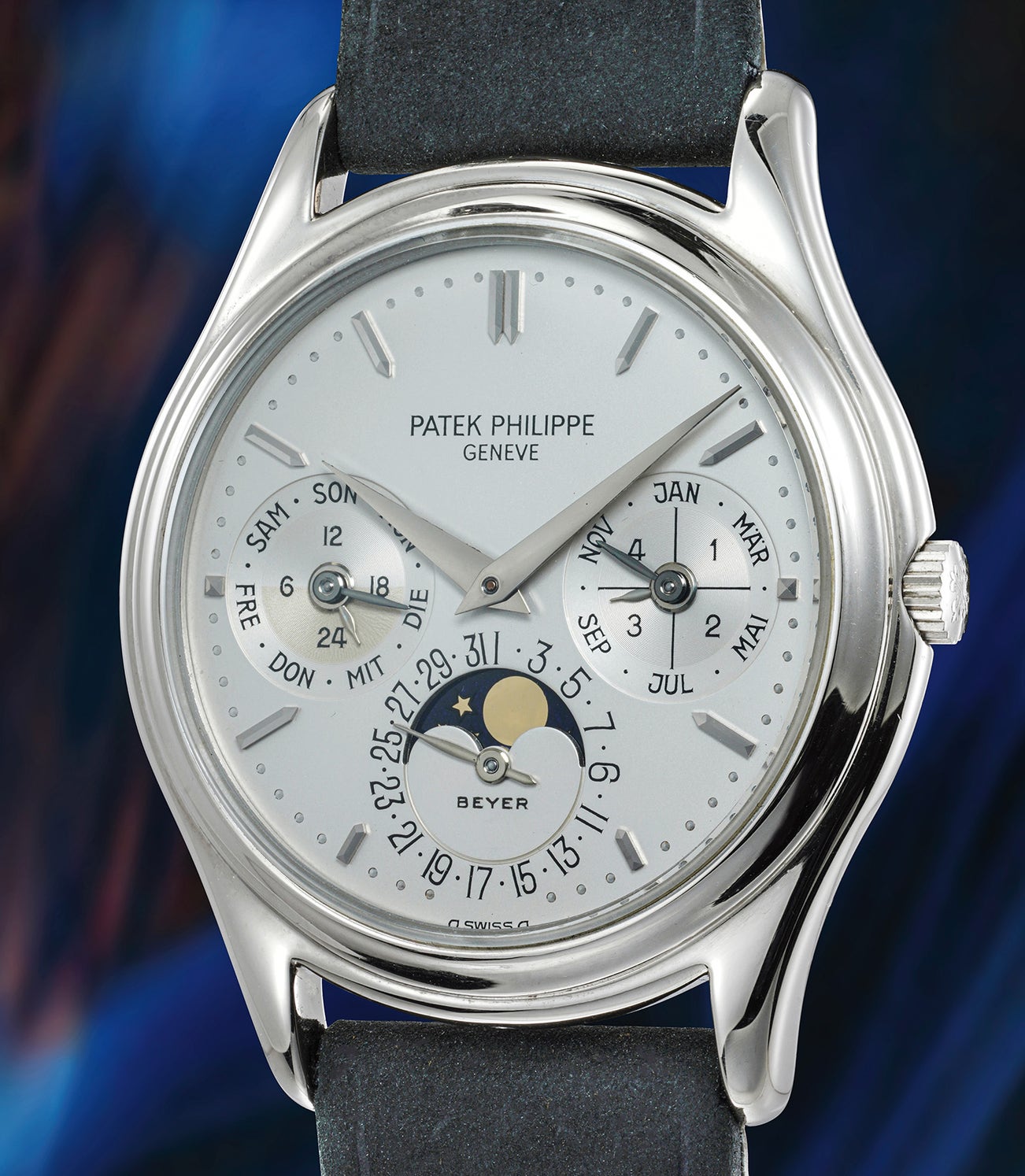 Reference 3940 and 3941 distinguished themselves mainly through one unique difference, that being the caseback. Reference 3940 features a solid case back whereas reference 3941 is fitted with a glazed display back, like the present example. Interestingly, these caseback are un-numbered, hence Patek Philippe applying the numbers inside the case underneath the bezel. With an increasing demand for both casebacks, Patek Philippe later produced the model with both case back options subsequently ceasing production of the reference 3941 in in 1990 as there was no longer a difference between the two models. The short production run definitely contributed to the existence of only very few examples, with research suggesting that only 35 models of this reference are known to date.