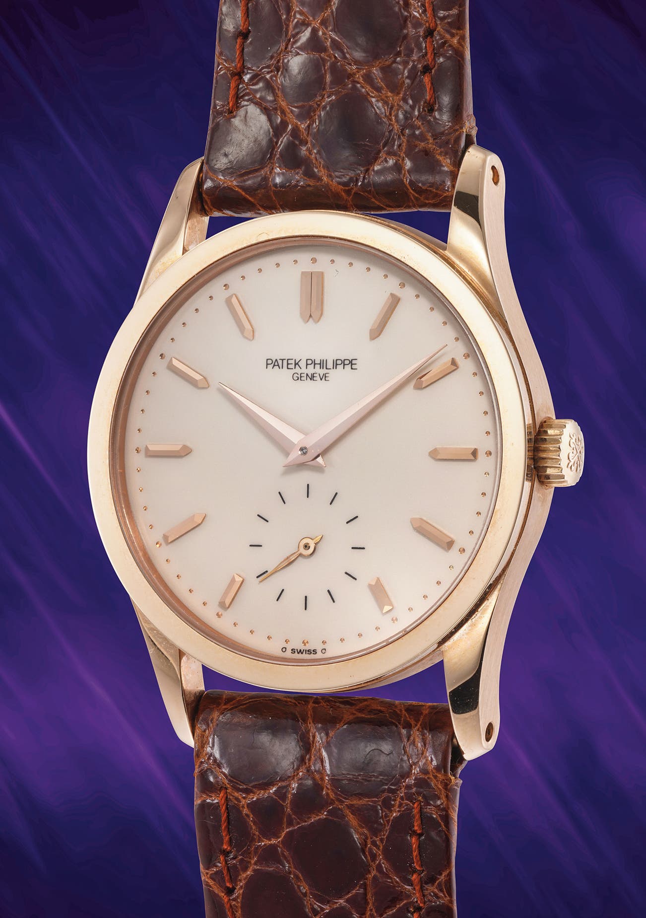 The virtually mint pink gold case is a fantastic complement to the off-white/ivory dial. Together with the pink gold dauphine hands and pink gold applied baton hour markers on top, a sense of depth is added to layout and the overall design emanates supreme elegance. The present watch is powered by the caliber 215, a successor introduced in 1974 to the calibre 12-120 and a staple movement in the Calatrava collection.