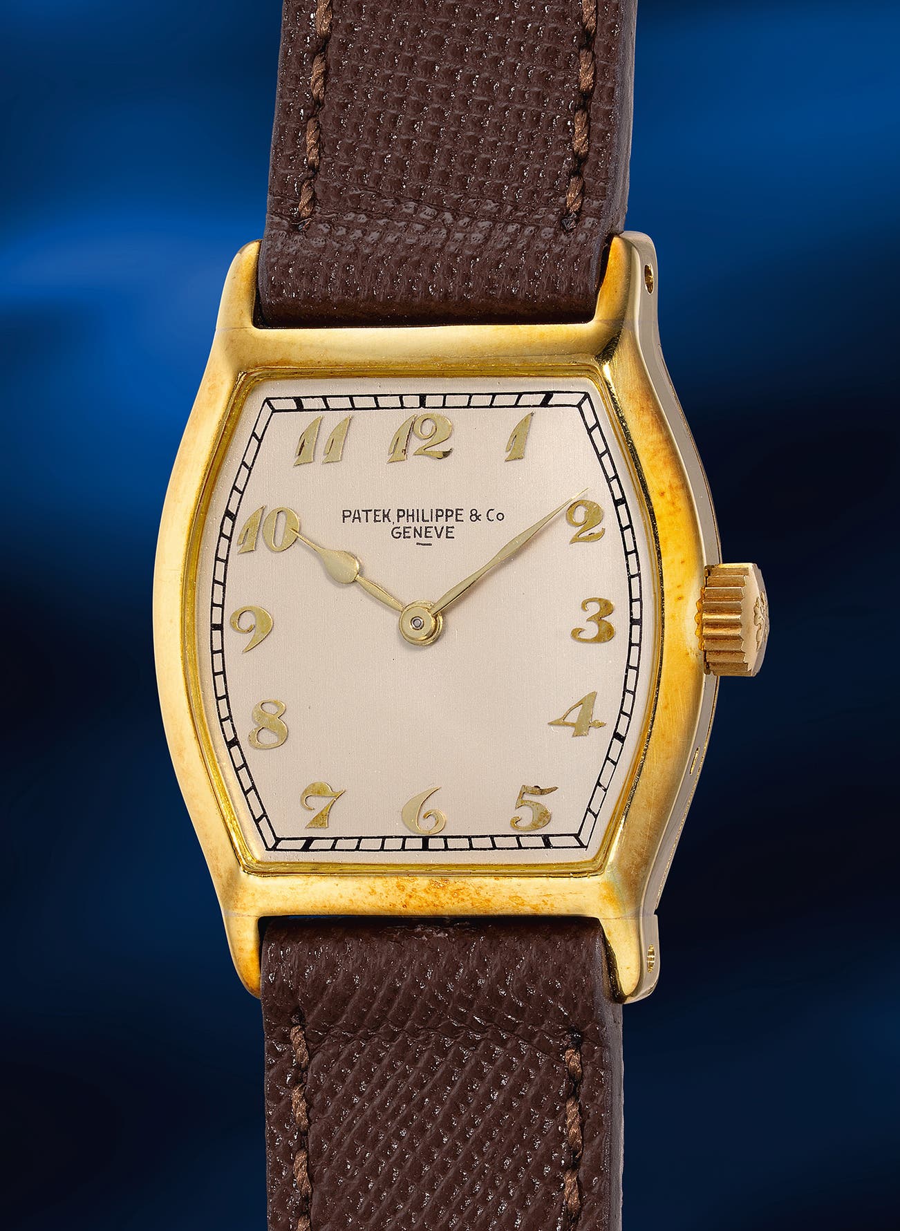 The service invoice that accompanies the watch indicates that it was serviced in Patek Philippe in 1983, along with the purchase of a new buckle. Only a handful of tonneau-shaped Patek Philippe watches have resurfaced over the years, and this particular piece has remained in the same collection for over 40 years, complete with all paperwork that details its provenance.