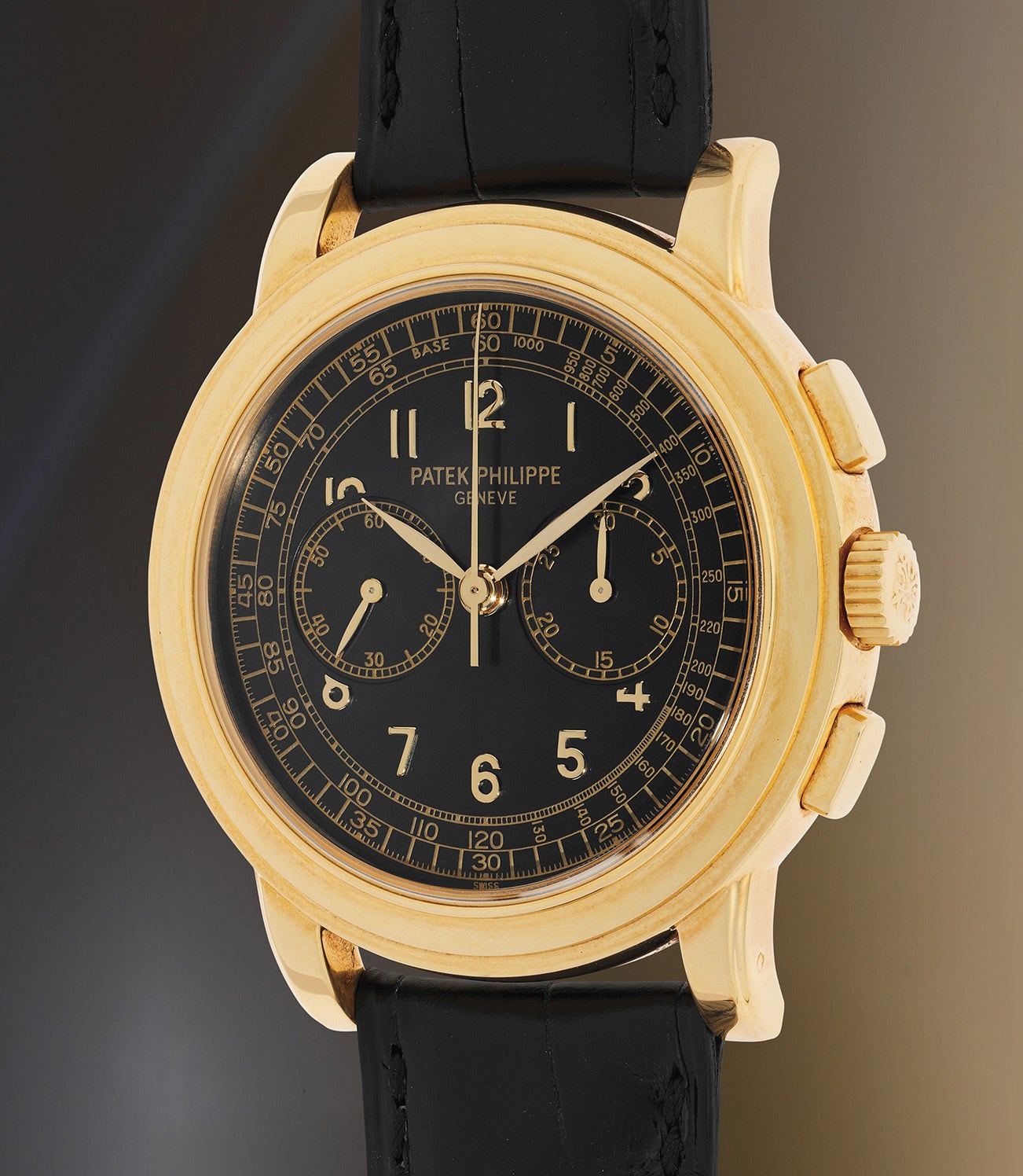 Introduced in 1998 at Basel, it was something of a shock to collectors that Patek would choose to reintroduce their chronograph-only line in such bold fashion – particularly the oversized 42mm case diameter and the dramatically thick, stepped bezel. First released in 18K yellow gold with a black dial, such as the present example, the manufacture drew inspiration for the design of the 5070 from a unique, split-seconds chronograph wristwatch from the early 1950s, the reference 2512.