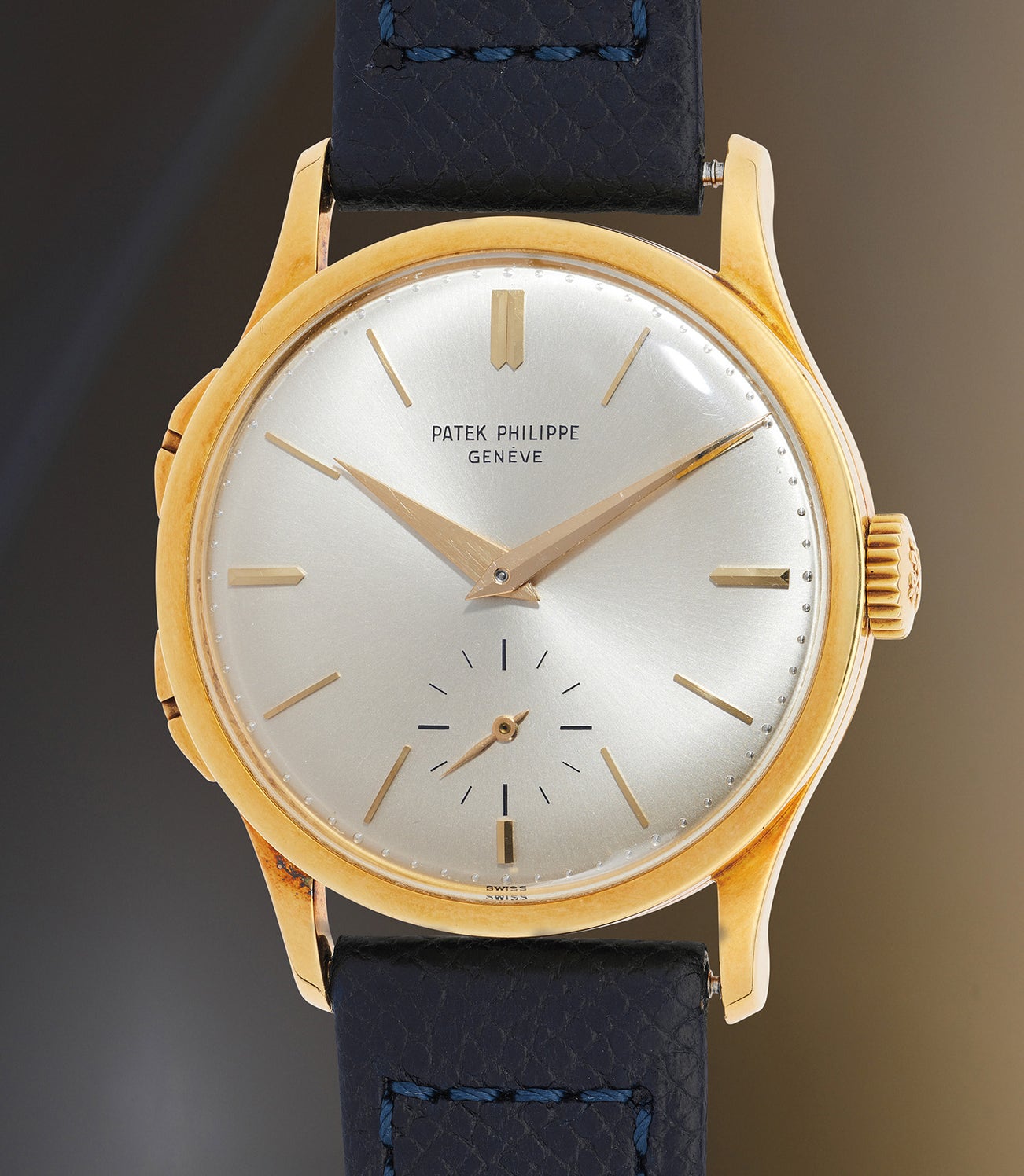 The first series, like the present watch, featured one hour hand and two pushers on the left side of the case allowing for the hour hand to be quickly adjusted forward or backward. The second series, launched in 1962 added an additional hour hand. So intelligent and enduring was this design, a version of the same system can be found in Patek Philippe’s World Time Chronograph ref. 5930G launched in 2016. Scholarship tells us that the first version was made in approximately 100 pieces, with the vast majority cased in yellow gold.