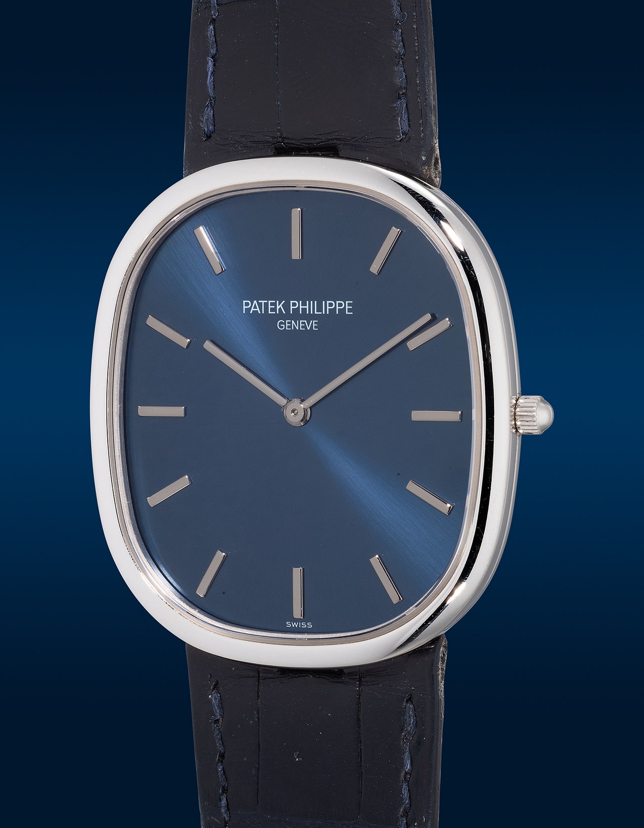 - The present reference 5738 was introduced in 2008 for the 40th anniversary of the Ellipse collection and was designed to offer a modern interpretation of the Golden Ellipse which meets contemporary aesthetics. It was modified in its dimensions and was produced in platinum for the first time. In perfect harmony with the platinum case, the blue gold sunburst dial inside shimmers beneath the gold applied hour markers, resulting in a charming elegance that cements the Golden Ellipse as a cult classic.