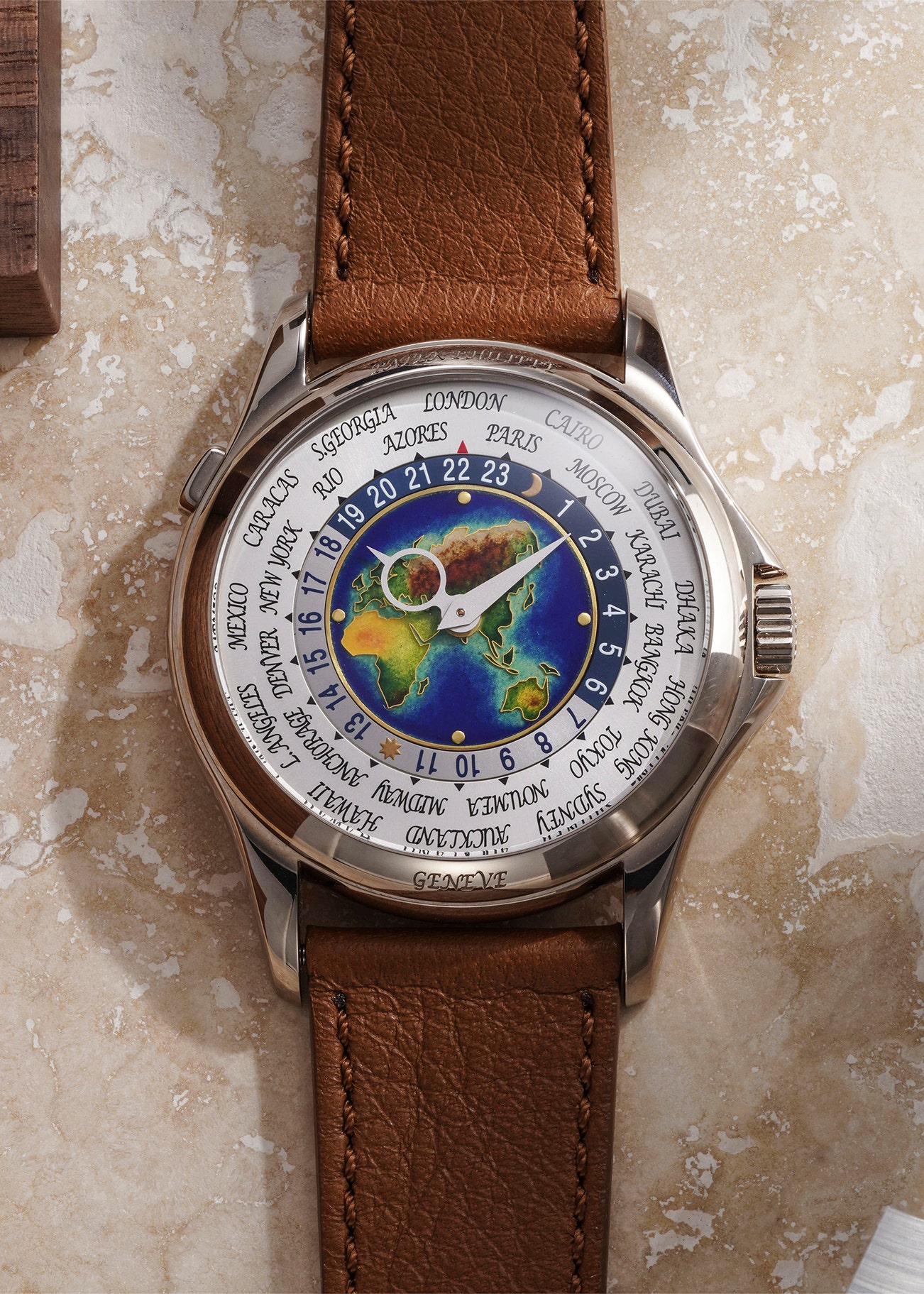 - Painstakingly difficult to execute and only realised by the most skilled artisans, the world time reference 5131 was produced in limited quantities. As shown in the present example, the vivid cloisonné enamel center disc depicts Europe, Africa, Asia, in a brilliant mixture of blues, greens, browns, and yellows hues, all outlined in fine ribbons of gold.