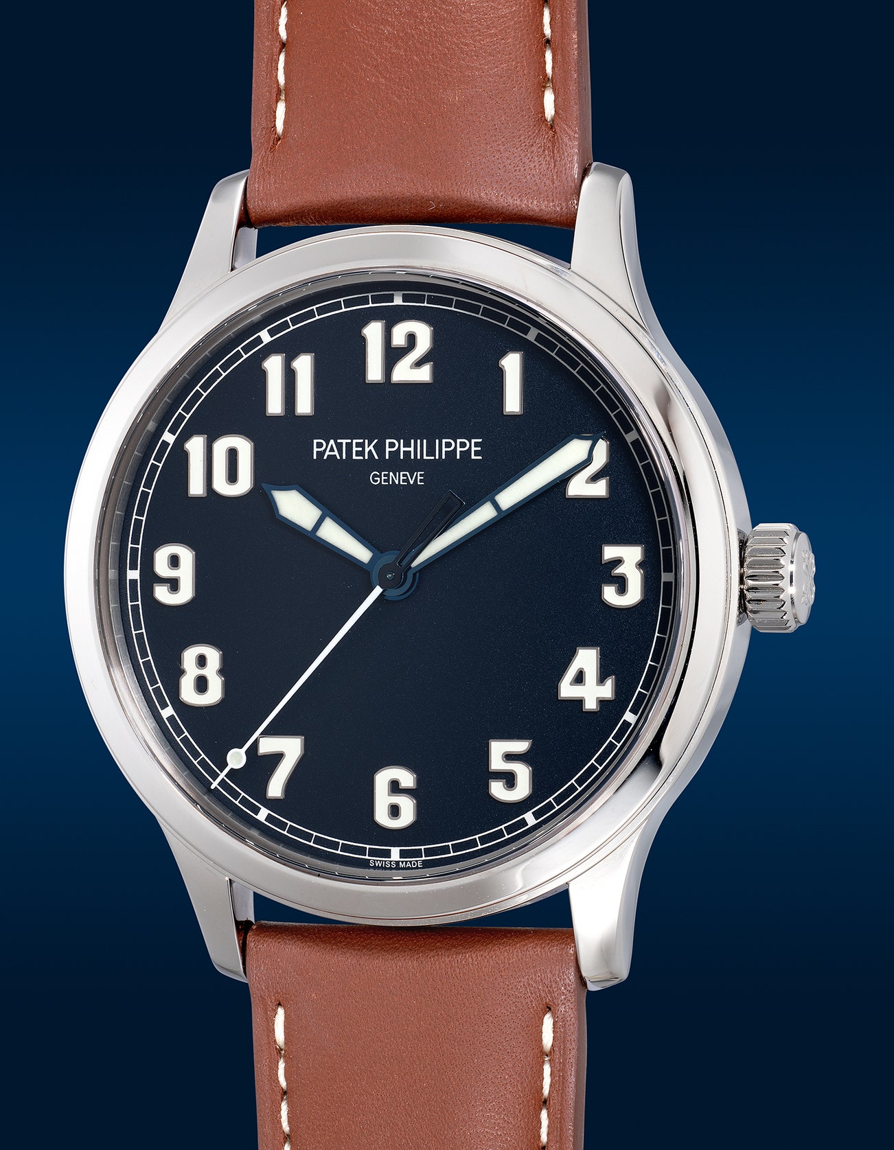 - Referencing their past, and the iconic Calatrava wristwatch, first released in 1932, the Calatrava Pilot was named for its 1930s vibe and vintage aviators-style dial aesthetic. The deep blue lacquer dial, similar to the reference 5524G Pilot’s Travel watch features oversized Arabic numerals and blue steel hands with luminous coating.