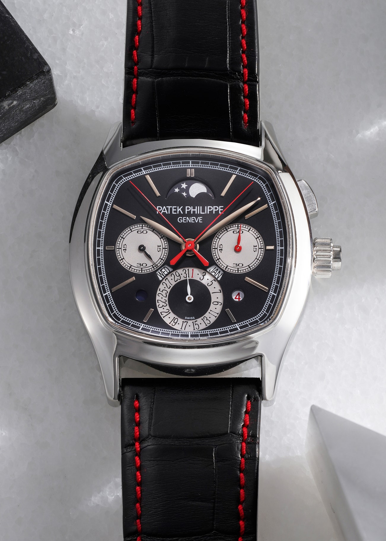 -The present example is offered complete of its original accessories and is preserved in excellent condition. Its retro-futuristic aesthetics, first series classification, superb movement, and very limited output for the model make this piece a grail watch both for the collector of ultimate Patek Philippe wristwatches and for the general connoisseur of high-end watchmaking as well.