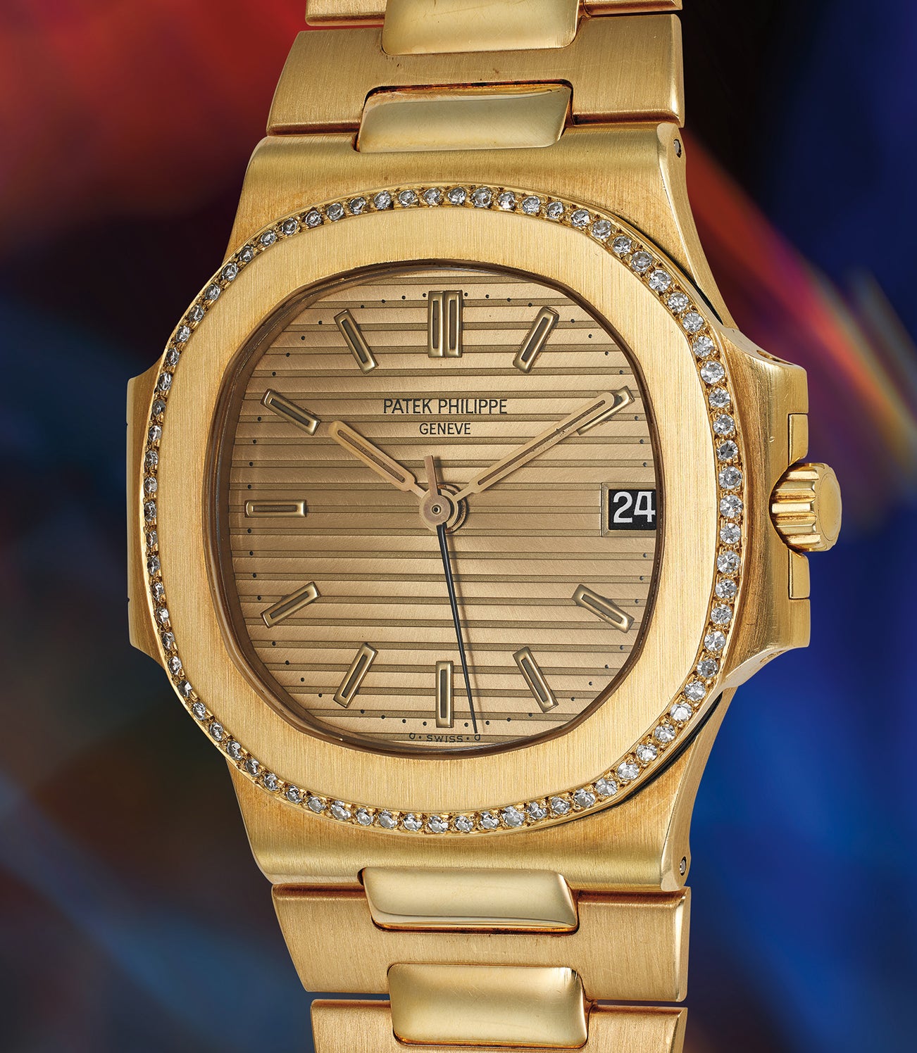 Encased in luxurious yellow gold and fitted with a champagne ridged dial, this 3800/2 monochromatic variant is very rare with only seven known examples. Moreover, the diamond-set bezel adds a subtle touch of elegance to the sports watch. Stylish and sophisticated, this Nautilus is sure to entice both male and female collectors of one of Mr. Gérald Genta’s most sought-after creations.