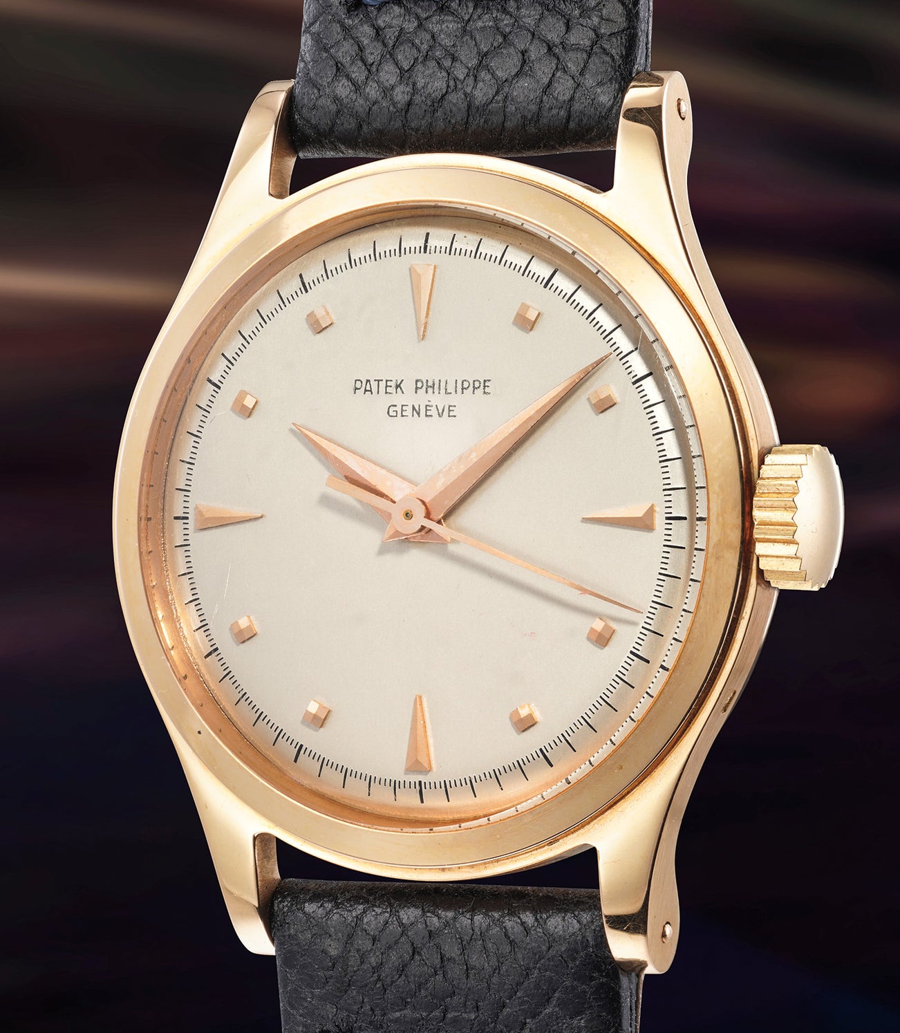 Launched in 1951, at 35.5mm reference 2508 was quite a large timepiece for the time, when typical gentlemen’s wristwatches measured a mere 33mm diameter. The model was intended for a more intensive and professional use than the usual Patek Philippe dress watch, even featuring a screw-down case back, enabling the watch to be water resistant - a feature found on a small minority of vintage Patek Philippe’s production. Reference 2508 most notably features center seconds, powered by the calibre 27SC (SC for Secondes au Centre), one of the most appreciated vintage, manually-wound, center seconds calibers made by any manufacturer. The caliber 27SC also serves the base for the movements used in some of the most hallowed complicated Patek Philippe vintage models such as the reference 2497. The Taubert-sourced case features the gently downturned and curvaceous lugs seen on the venerable reference 1463.