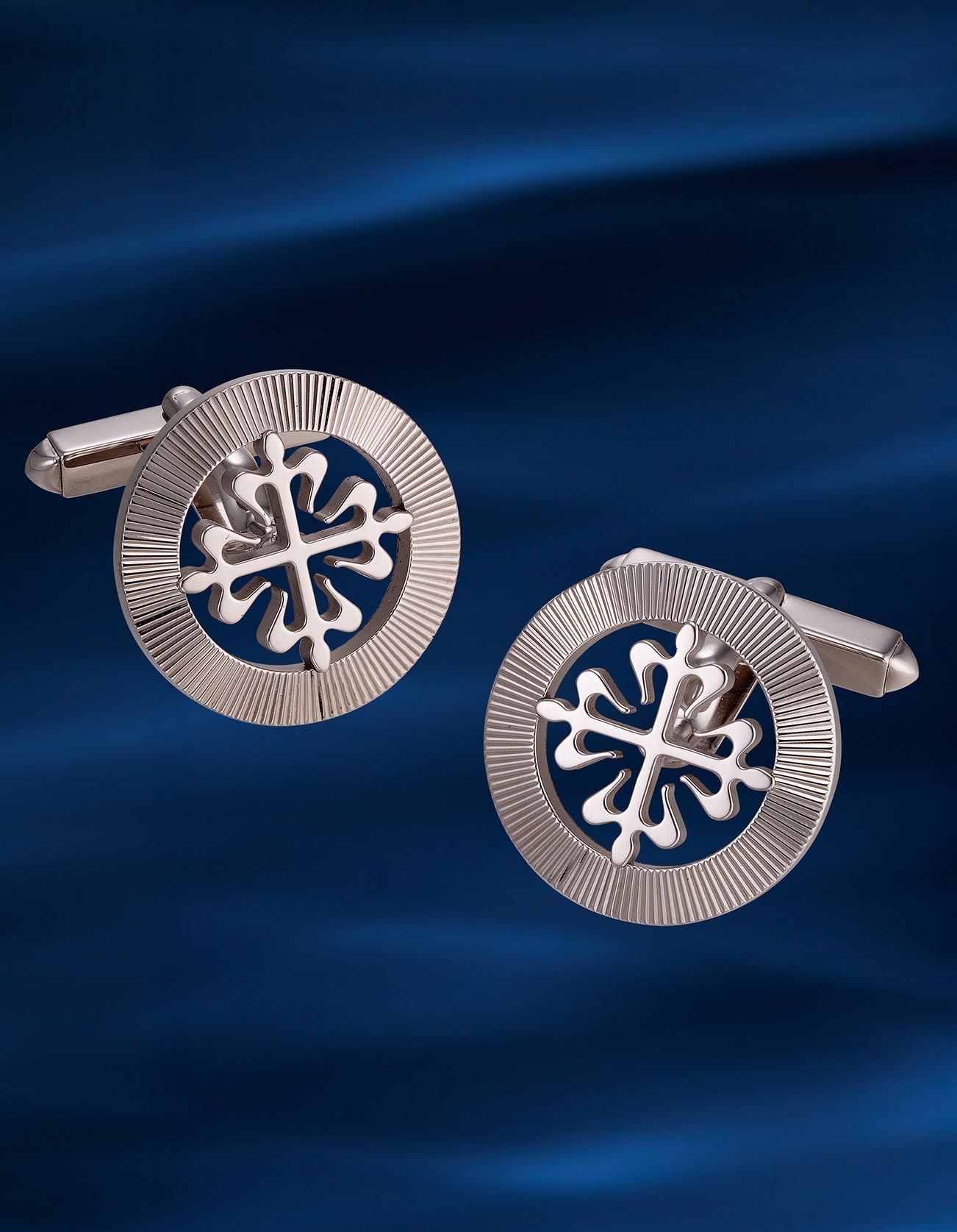 - The present pair of Calatrava Cross cuff links are crafted in 18K white gold and preserved in excellent condition. Featuring a guilloché outer ring, these cuff links will surely elevate your outfit with elegance.