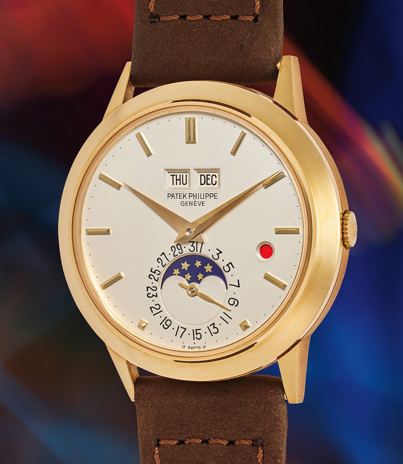 The present watch, manufactured in 1982, is a rare and early first generation of the reference 3450 fitted with a “red dot” leap year indicator. Earliest examples of the reference featured this "red dot", also known as "bollino rosso", charmingly nicknamed by Italian collectors, to indicate the fourth year of the leap year cycle. Later examples would instead display the Roman numerals I, II, III and finally ‘IV’ for the leap year.